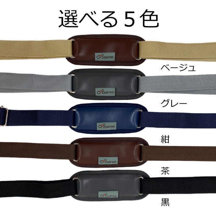 色は5色です。紺以外はパッドとベルトに異なる色をほどこしているので、お持ちのバッグに合わせやすくなりました。黒(パッドと接続部の人工皮革はチャコール)