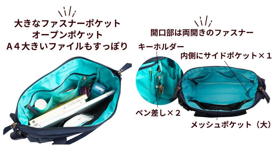 ニューマルシェはコアルーバッグで人気No.1で、旅行のほかマザーズバッグや通勤用、ジム通いなど、様々な用途で使われています。特殊な使い方としてはカメラバッグやPCバッグ(インナーケースを入れて使用)、楽譜や画材、手芸用品を持ち運ぶ方も。