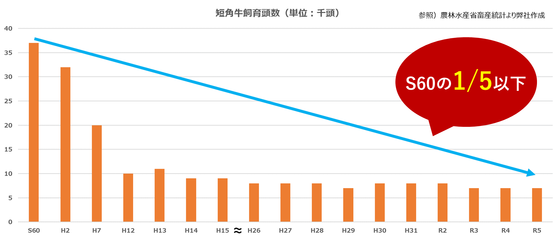 市場流通量が少なく、通常であれば滅多に市場に出回らない「短角牛」ですが、