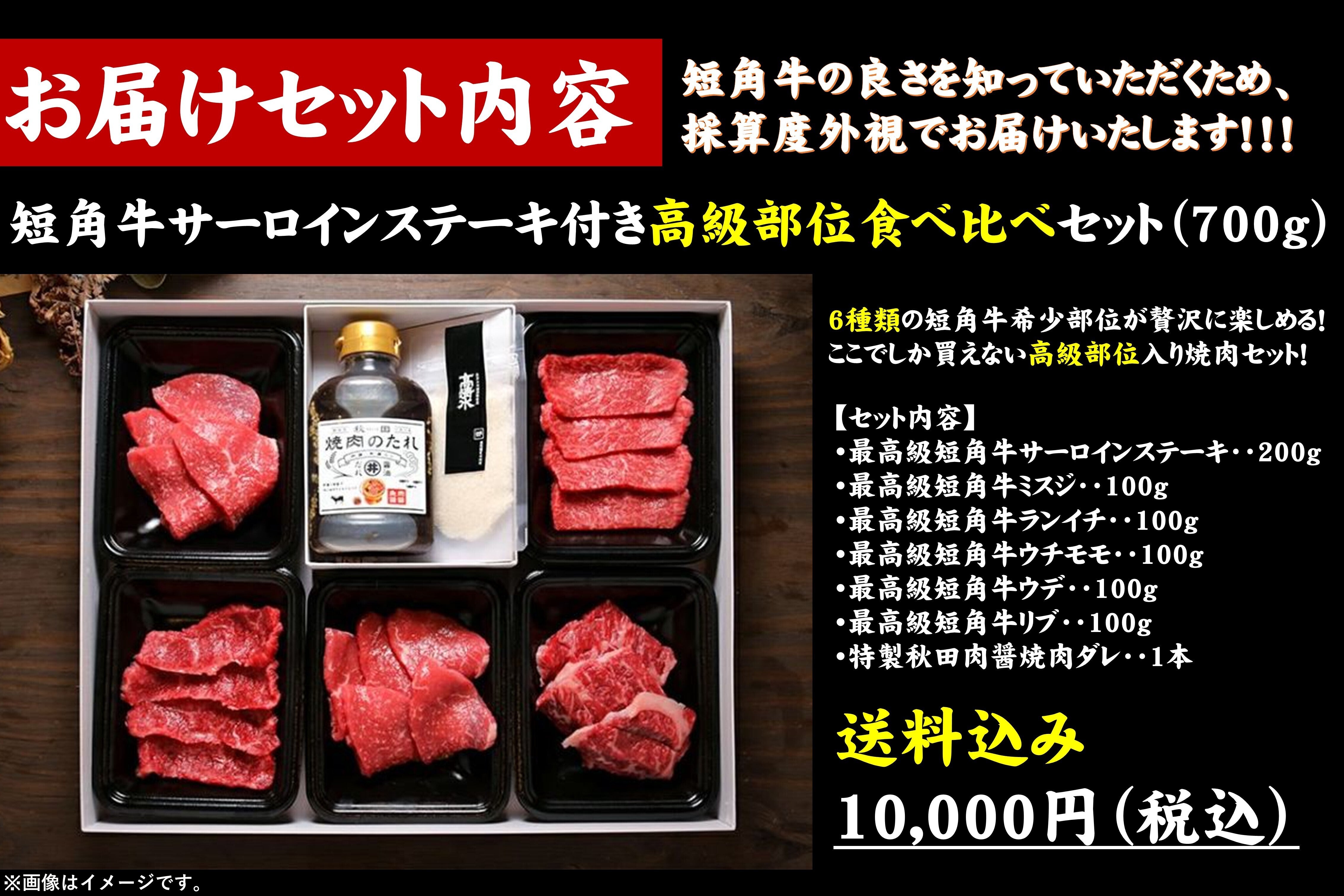 6.短角牛サーロインステーキ付き高級部位食べ比べセット(700g)‥10,000円