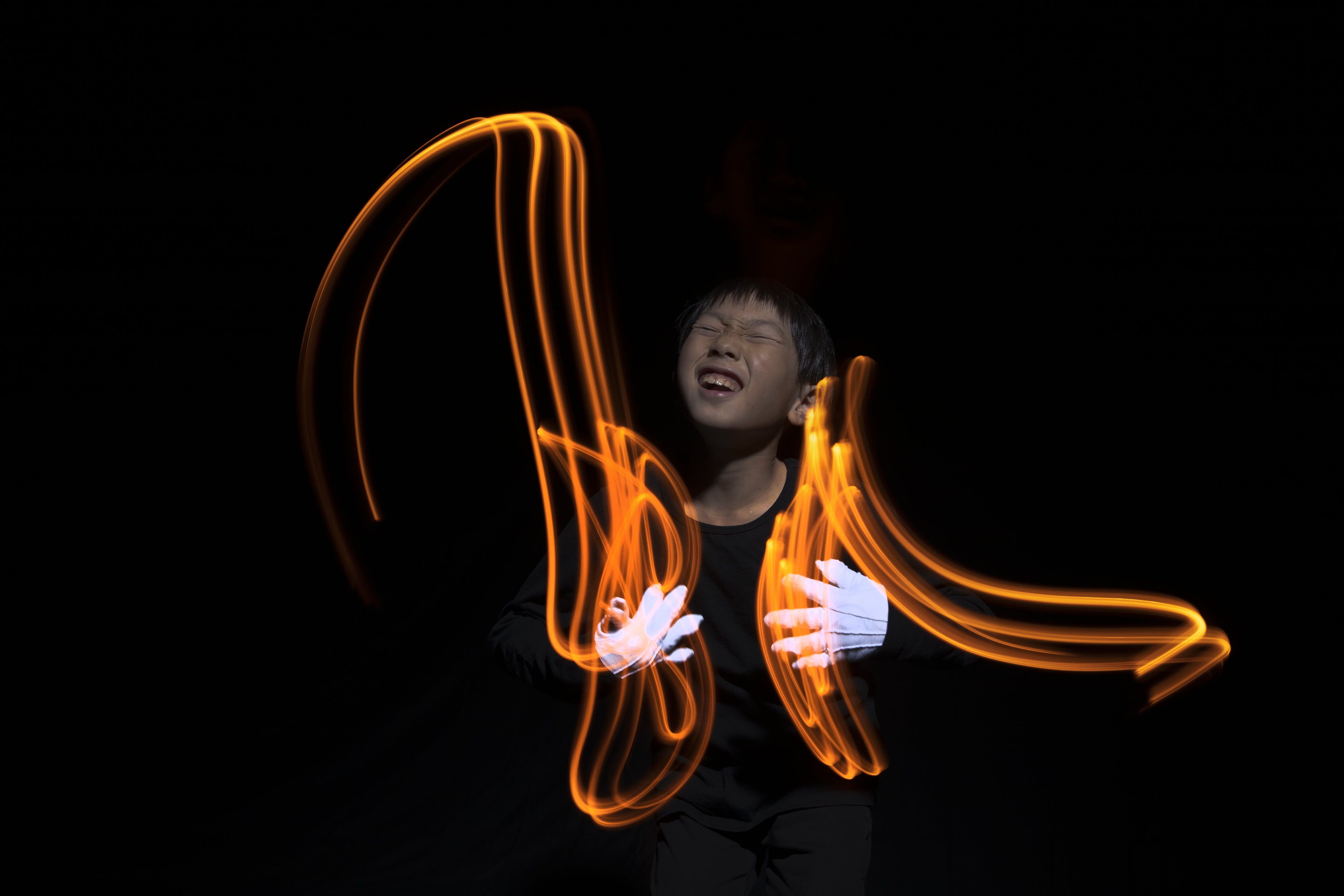 写真家田頭真理子は、指先にLEDを付けた特殊な手袋で、彼らの手からほと走るエネルギーを「軌跡」に残す独自の手法で、音楽を可視化しました。