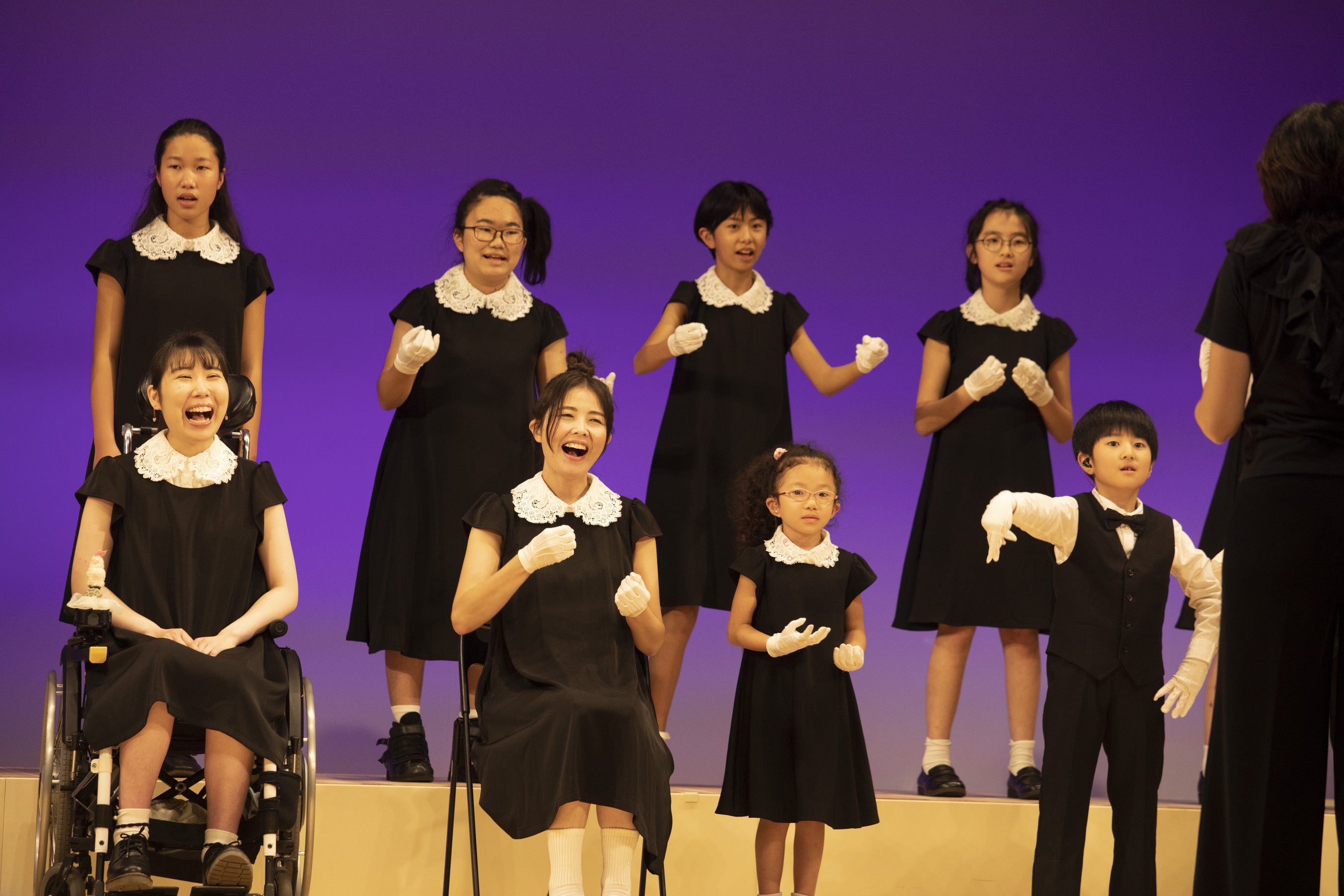 ホワイトハンドコーラスNIPPONは耳の聞こえない子、目の見えない子、車椅子ユーザーなど、6歳から40代の多様なメンバーが参加するユニークな合唱団です。2021年、シラーの歌詞を手話に訳した手歌版「歓喜の歌」を東京芸術劇場で初演しました。