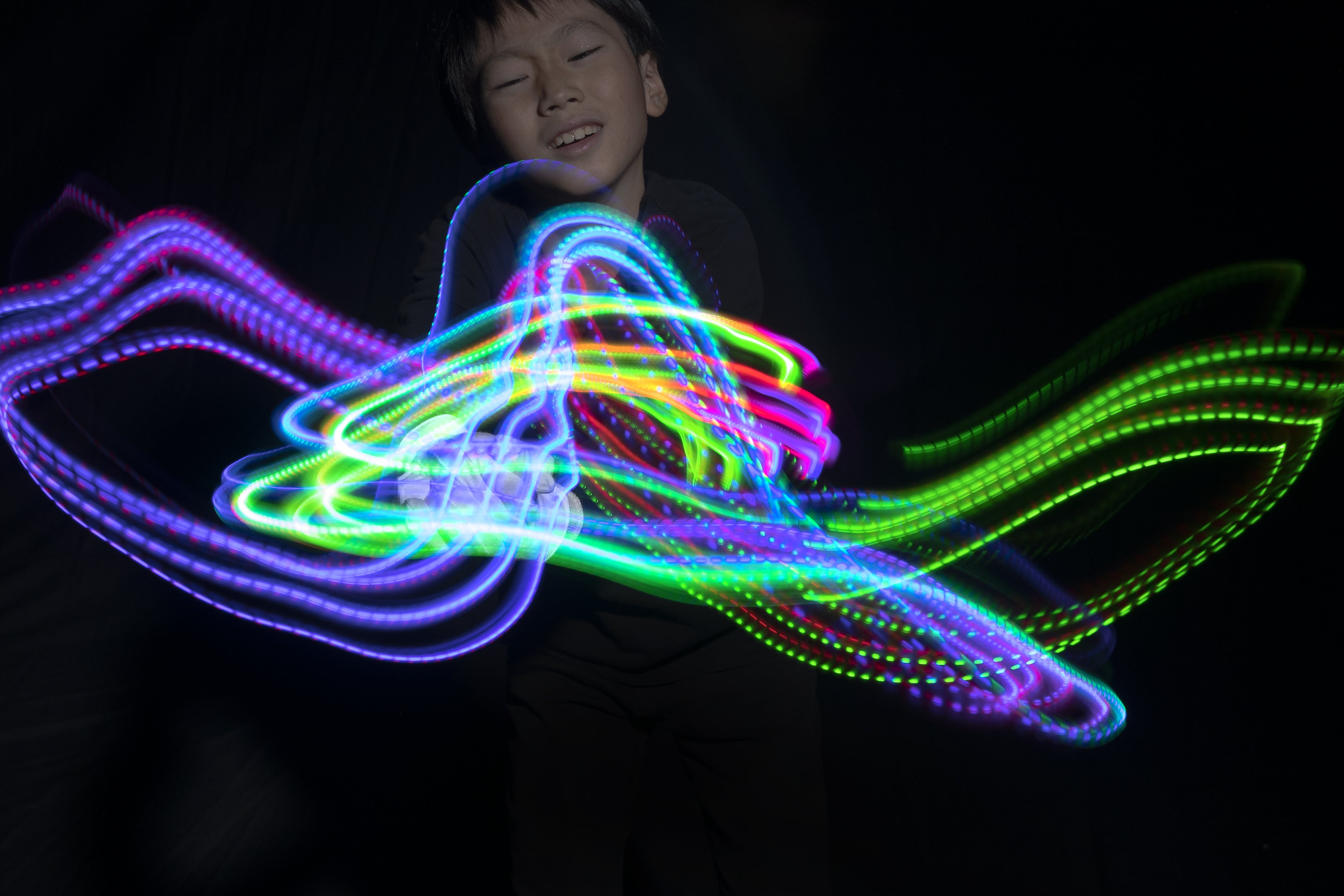 そのホワイトハンドコーラスNIPPONのエネルギーからインスピレーションを得た写真家田頭真理子は、彼らの手からほとばしるエネルギーを「軌跡」で写す独自の手法で作品にし、音楽を可視化しました。 田頭もまた、この活動を通して、写真は見るだけなのだろうか、見えない人も写真を楽しむことができないだろうか、という疑問を抱くようになり、触れる写真や、参加者も喜びを一緒に体験できる撮影体験などを展覧会に盛り込み、2022年、ダイアログダイバーシティミュージアムでこれまでの写真の概念を壊した新しい表現で体験型写真展「第九のきせき」を開催しました。