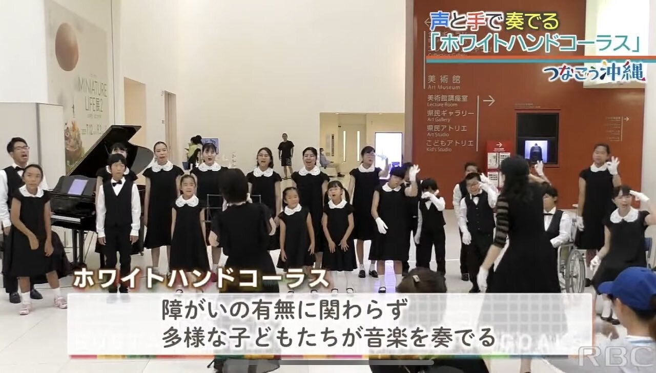 みなさまこんにちは。昨日、琉球放送 RBC NEWS Linkにてホワイトハンドコーラス沖縄の活動内容が特集されました!7月15日に開催された沖縄県立博物館・美術館(おきみゅー)でのコンサートの様子が映し出されています。番組Youtubeでも放送内容が公開されましたので、声隊ののびのびとした歌声、サイン隊の豊かな表現をぜひ映像でご覧ください!