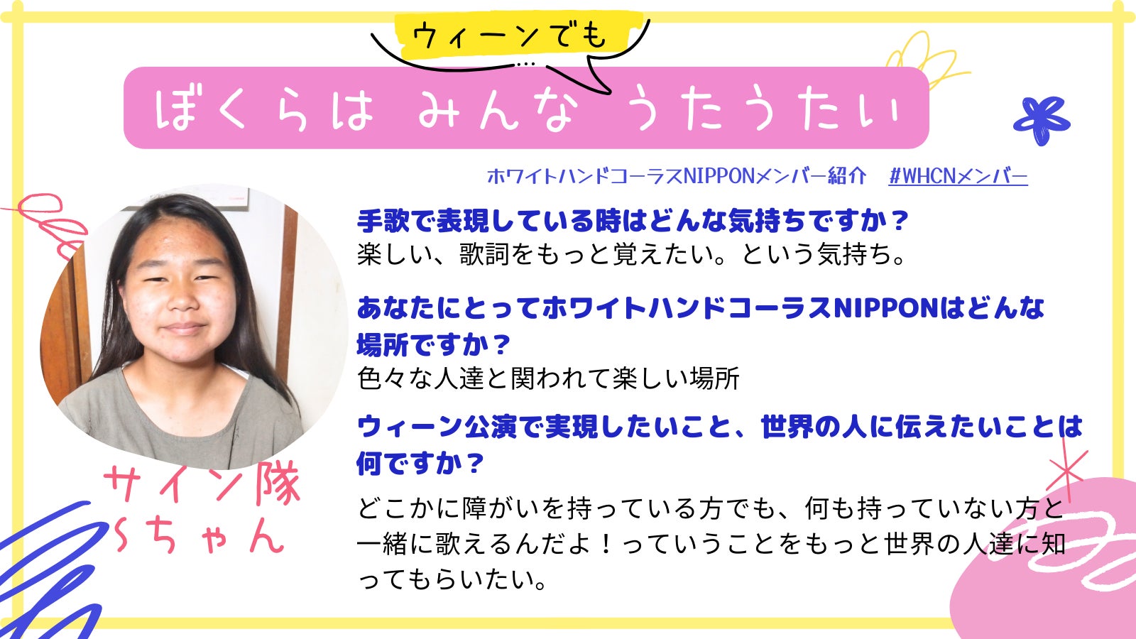 どこかに障がいを持っている方でも、何も持っていない方と一緒に歌えるんだよ!っていうことをもっと世界の人達に知ってもらいたい。