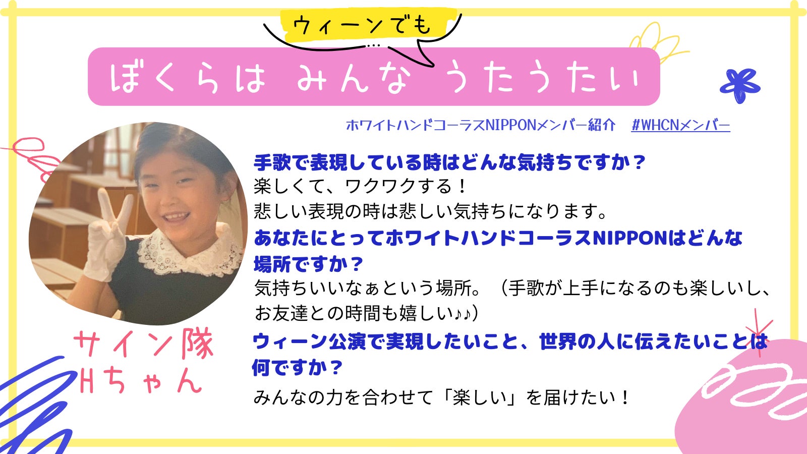 Hちゃんは昨年の京都公演を観に来てくれて、ホワイトハンドコーラスに入りたい!!と入団してくれた子。その時はまだ年長さんでした。