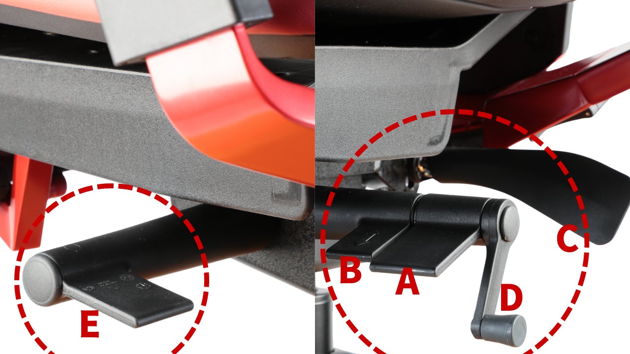 B:座面前後スライド調整レバー