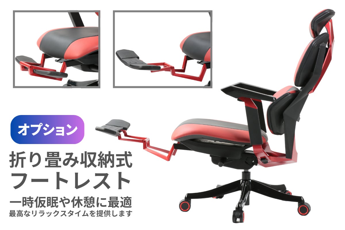 一時的な仮眠や短い休憩時に最適で、究極のリラックスタイムを提供します。この追加機能により、長時間の作業やゲームセッション後の疲れた足を休めることができ、より快適な座り心地を実現します。