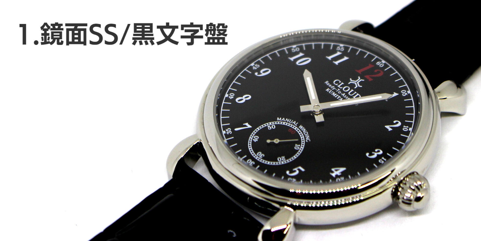 1.鏡面仕上げされたSSケースに黒文字盤を合わせました。