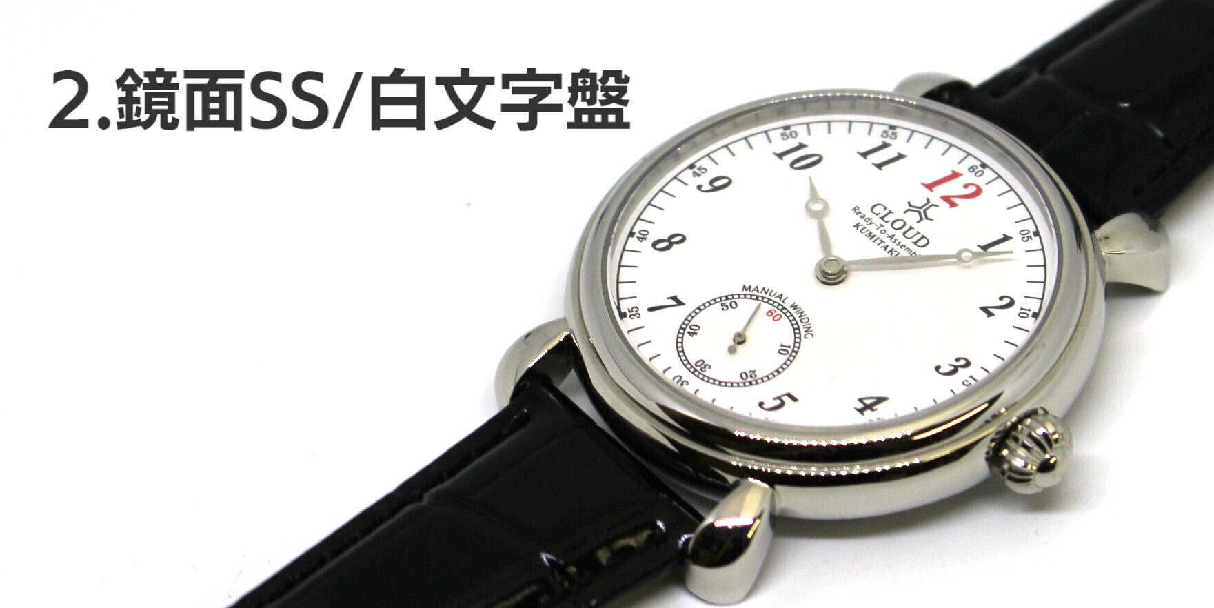 2.鏡面仕上げされたSSケースに白文字盤を合わせました。