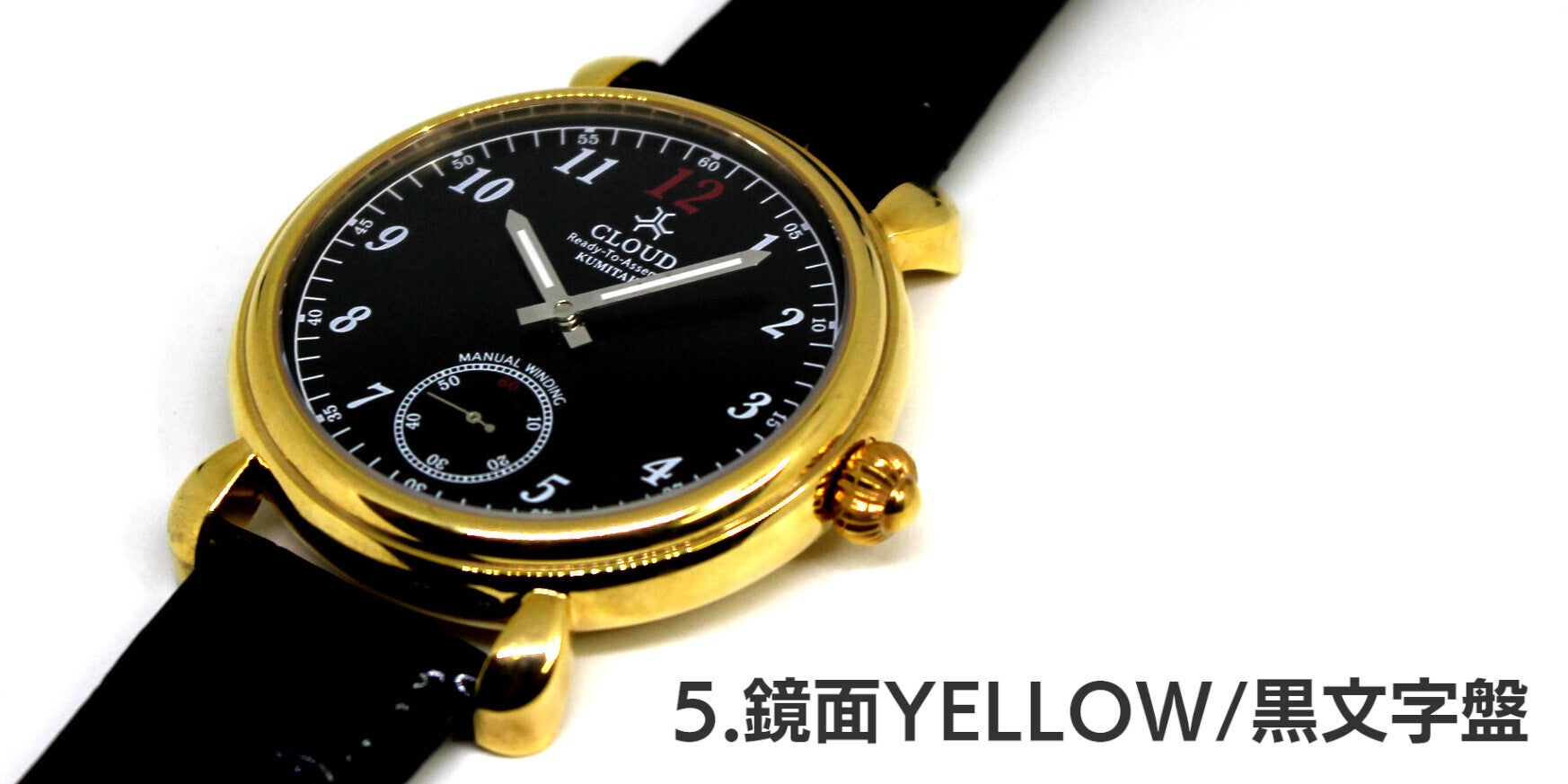 5.鏡面仕上げされたSSケースにK18イエローゴールドメッキを施し、黒文字盤を合わせました。