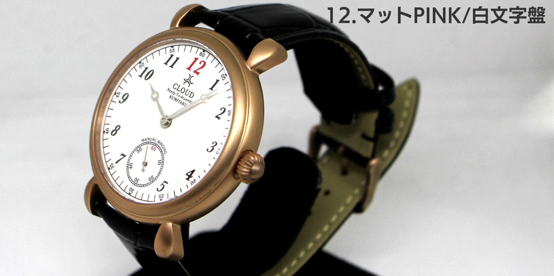 12.マット仕上げされたSSケースにK18ピンクゴールドメッキを施し、白文字盤を合わせました。