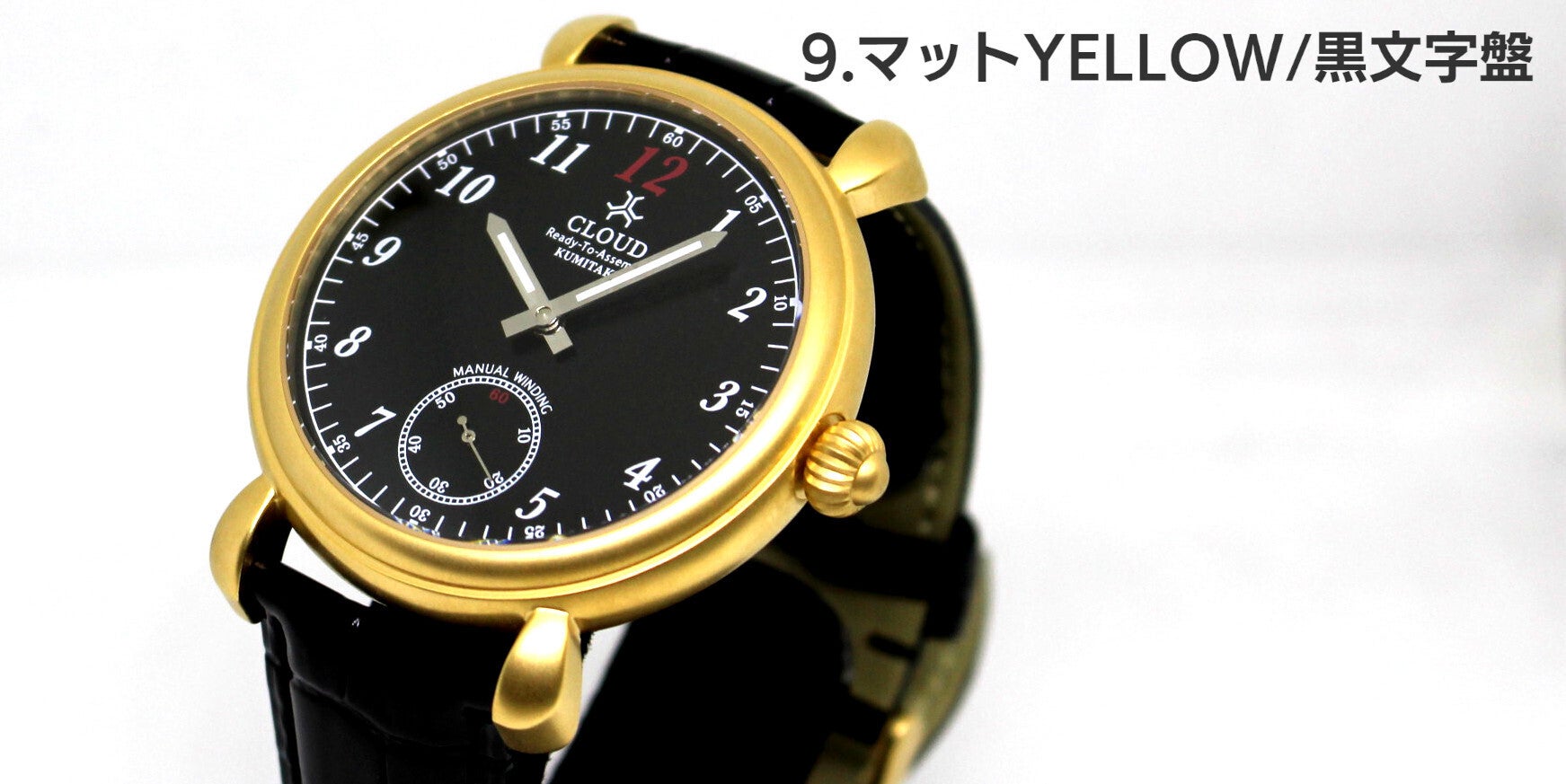 9.マット仕上げされたSSケースにK18イエローゴールドメッキを施し、黒文字盤を合わせました。