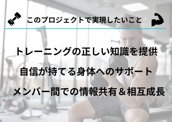 「筋トレで怪我をする前に正しい知識を学んでもらいたい」「お金がないからと学ぶ機会を捨ててほしくない」これらをクリアして実行できるのが、今回のプロジェクトです。