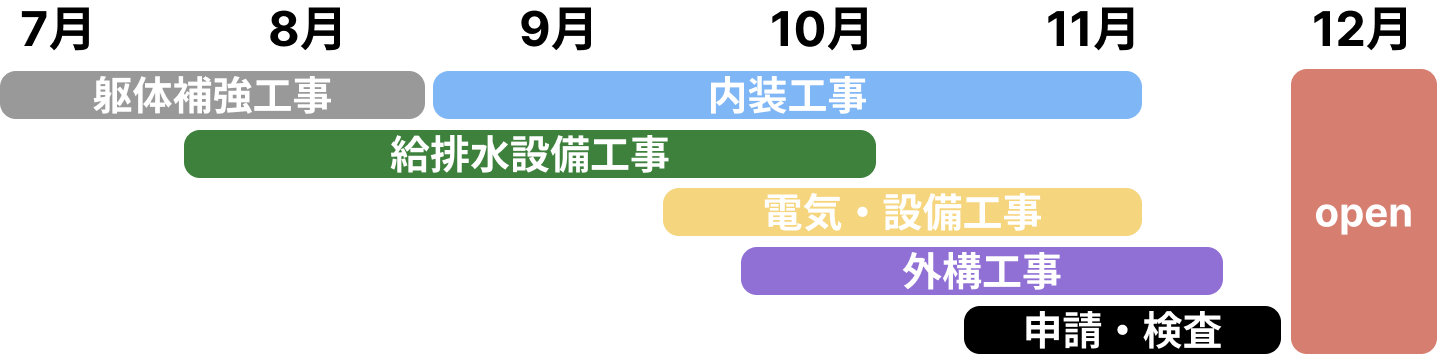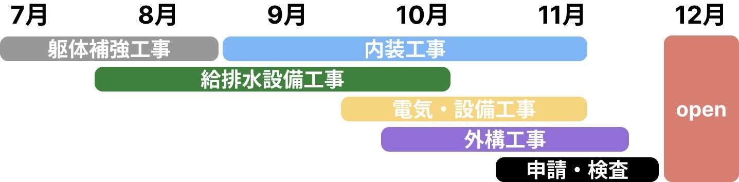 12月オープンを目標に、工事や開業に向けて進めていきます。