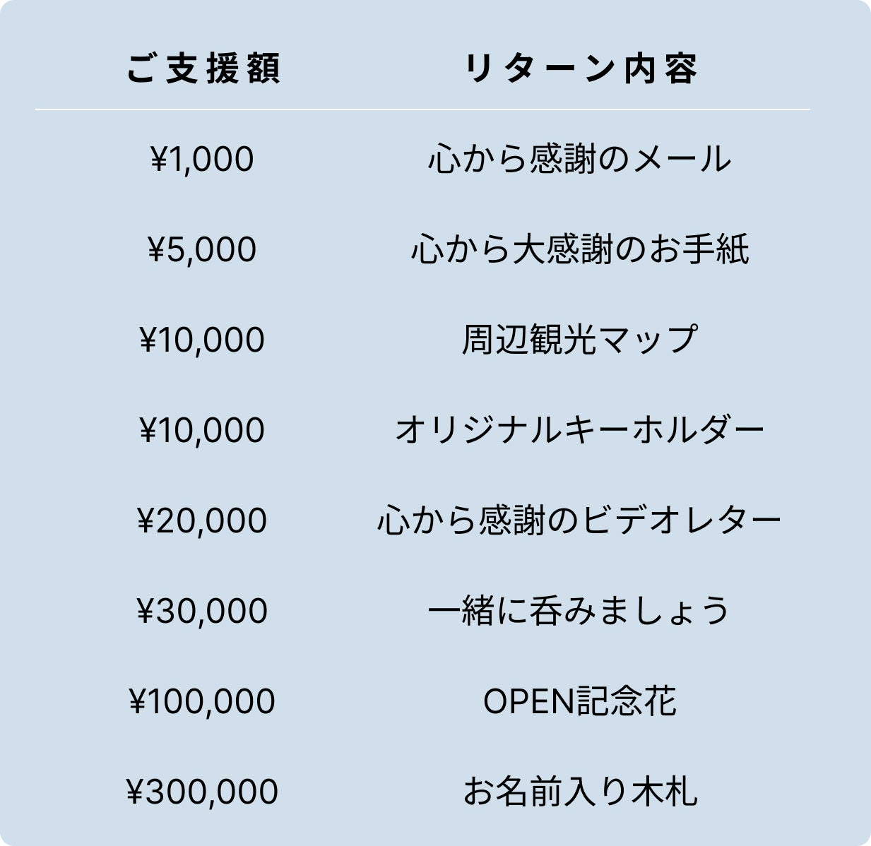 どのご支援額でも、応援していただけることがとても励みになります。