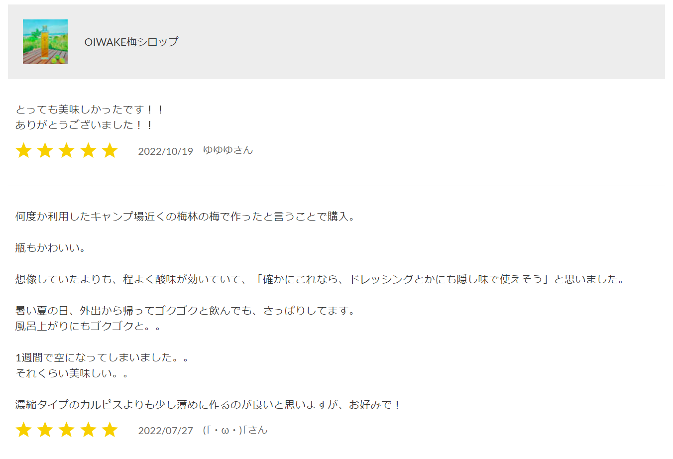 そんな梅シロップを飲んでくださった実際のお声をご紹介させて下さい!