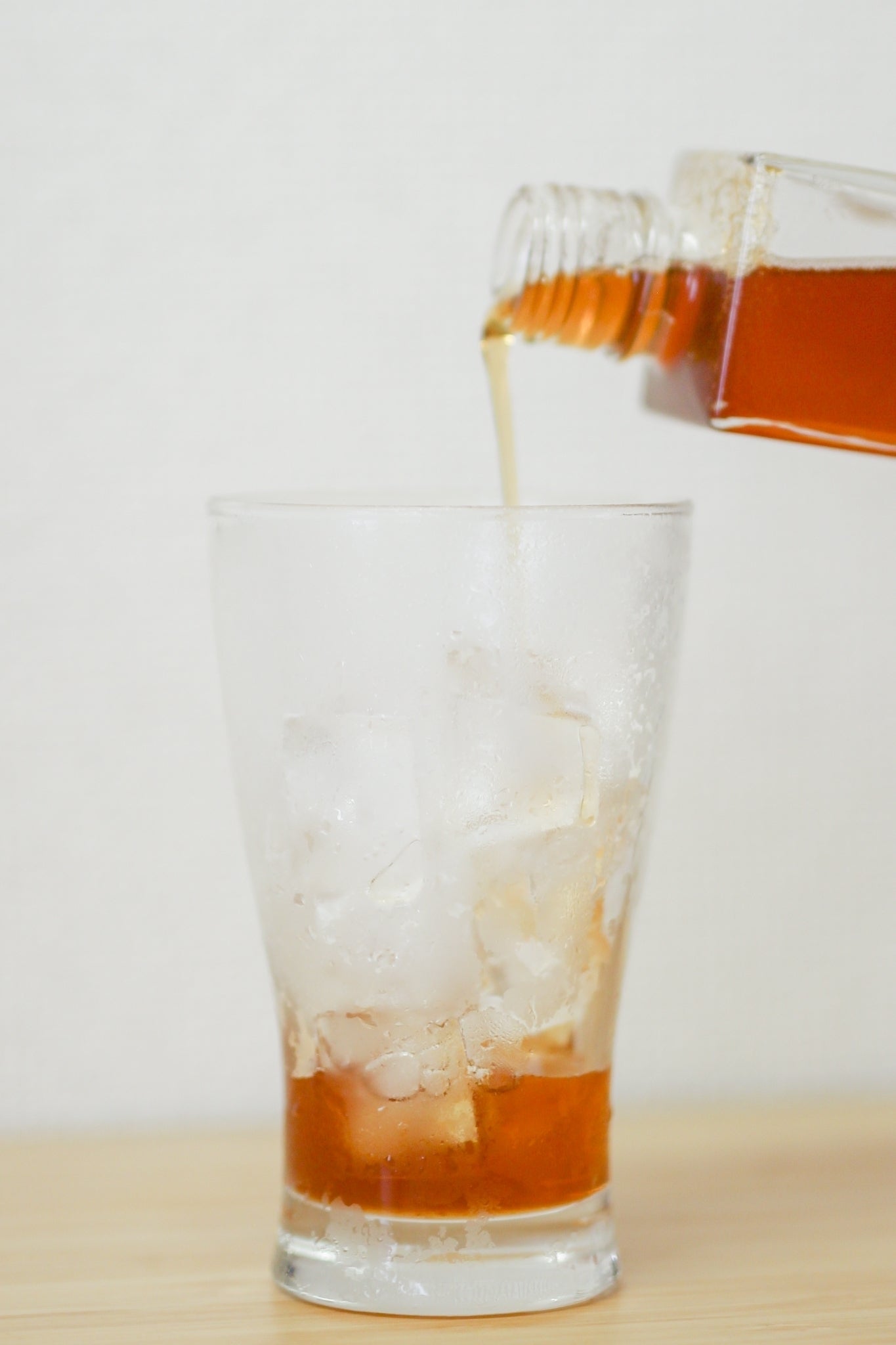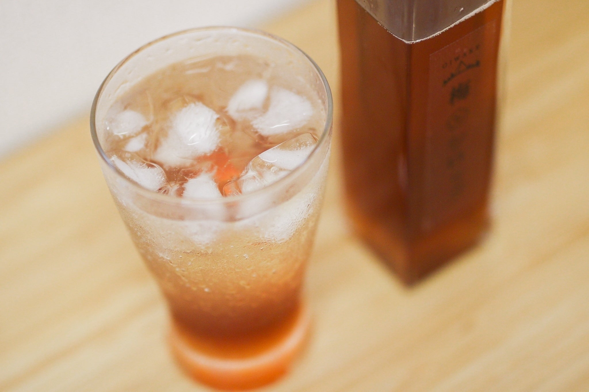 「しゅわっ。」と炭酸水で割ってゴクリ。