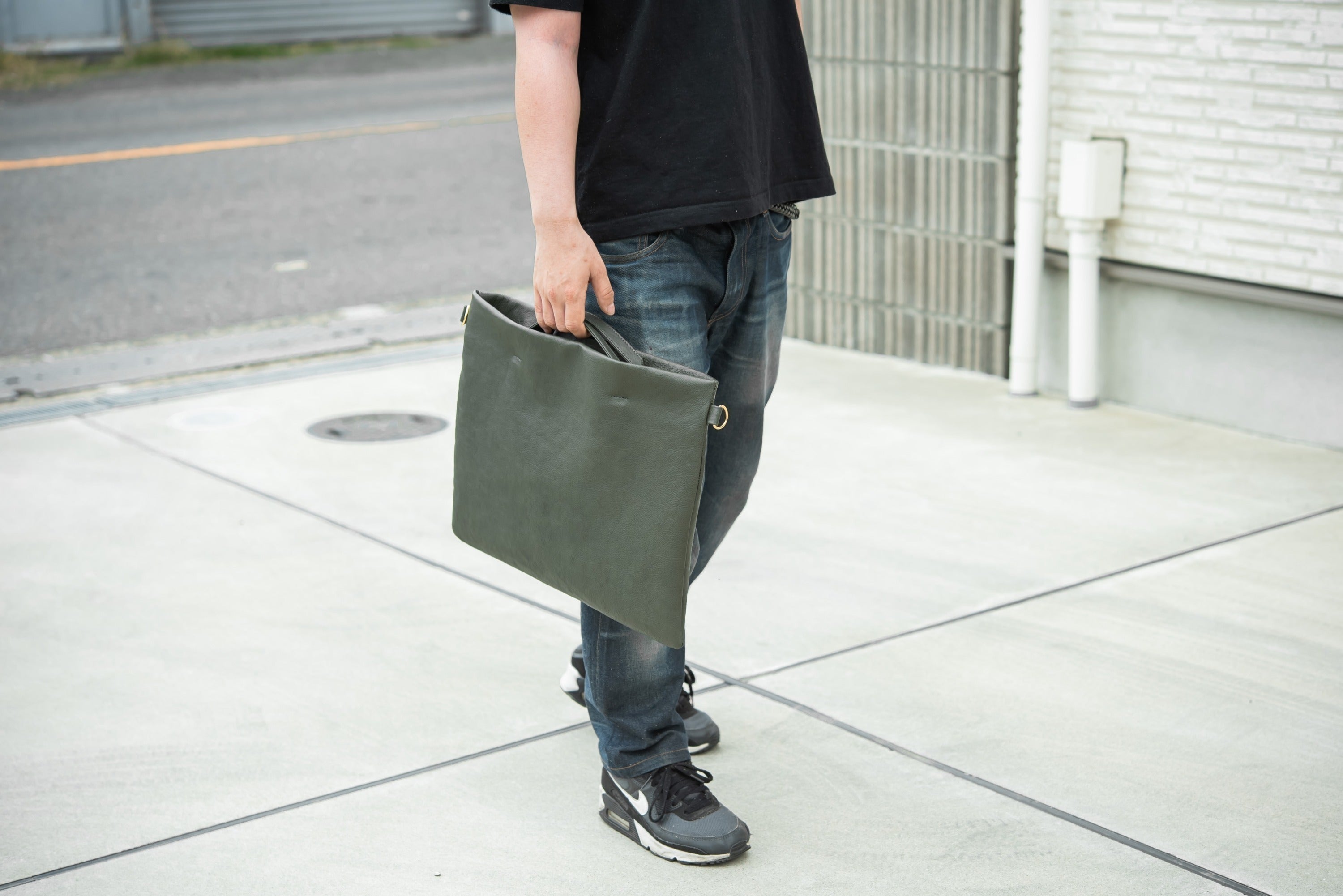 「通勤に使える事はもちろん、サウナやスーパー銭湯やトレーニングに行く時にも便利です。仕事にもプライベートにも使えるサコッシュ。シンプルながらもスタイリッシュで、これ1つを普段のスタイルに合わせるだけで『大人な男』に近づけるような気がします(笑)」(職人 誉大)