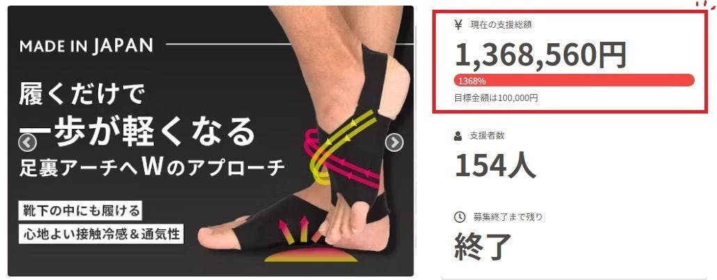 達成率も1300%を超え、応援購入総額 1,368,560円を達成することができました!