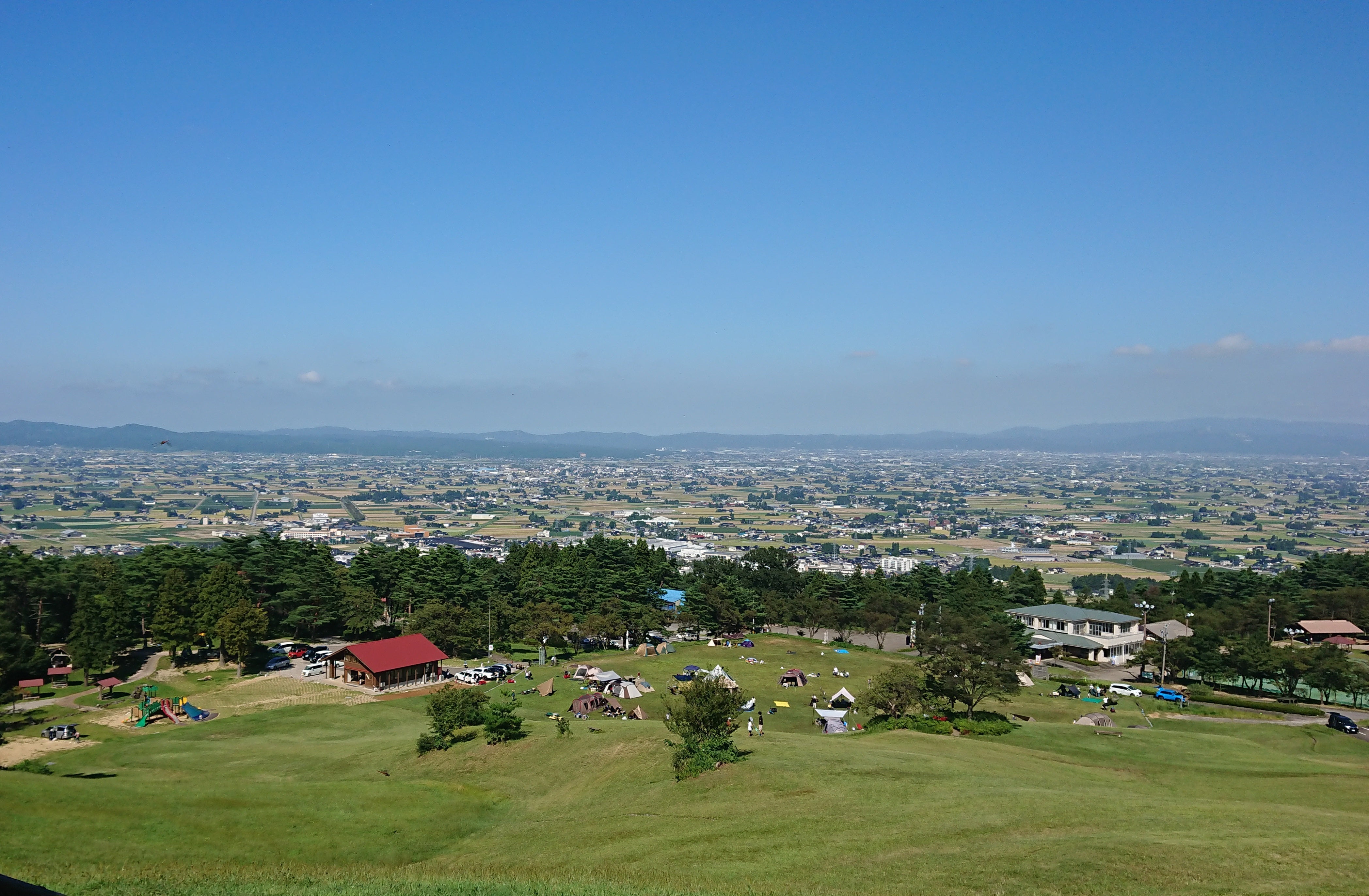 シーソーがある閑乗寺公園は八乙女山の中腹、標高約300mにある富山県南砺市の10ha余りの都市公園です。以前は短いリフト1本しかないミニスキー場であったことからコンパクトでゆるやかな芝生の斜面となっており、子供たちが思いのままに駆けたり転がったりできる自由な空間となっています。また、上部にある展望広場からは広大な砺波平野の田園風景の中に家々が点在するこの地域独特の散居村風景を眺めることができます。園内には展望が良いサイトや林間、芝生広場など変化に富んだキャンプサイトがあり、近年は年間約1万5千人のキャンパーが訪れる富山県内では有数の人気キャンプ場となっています。