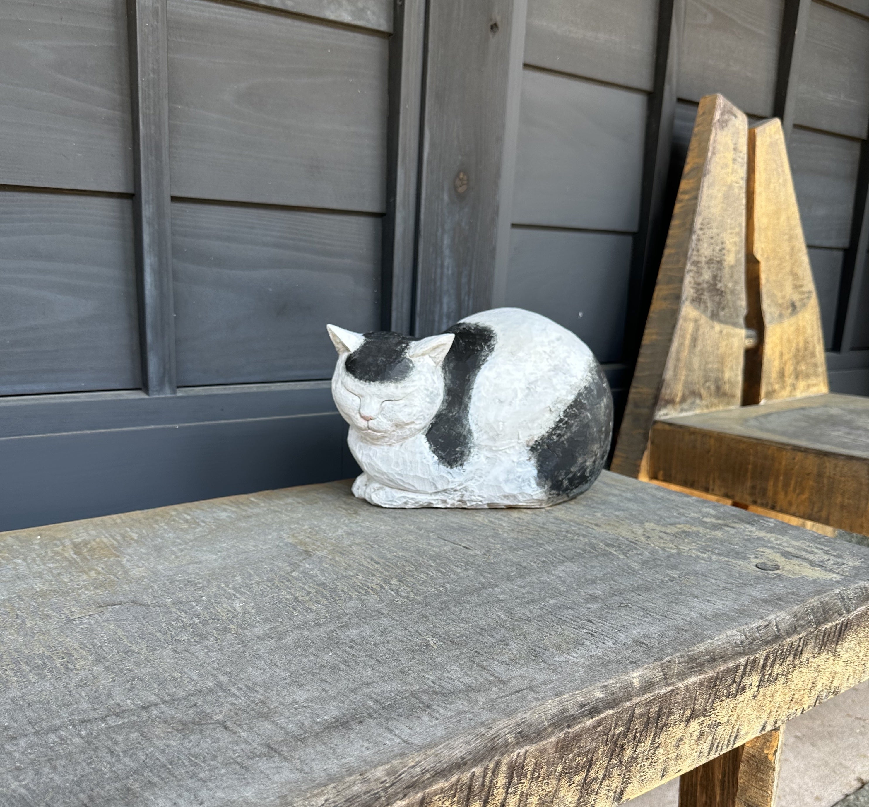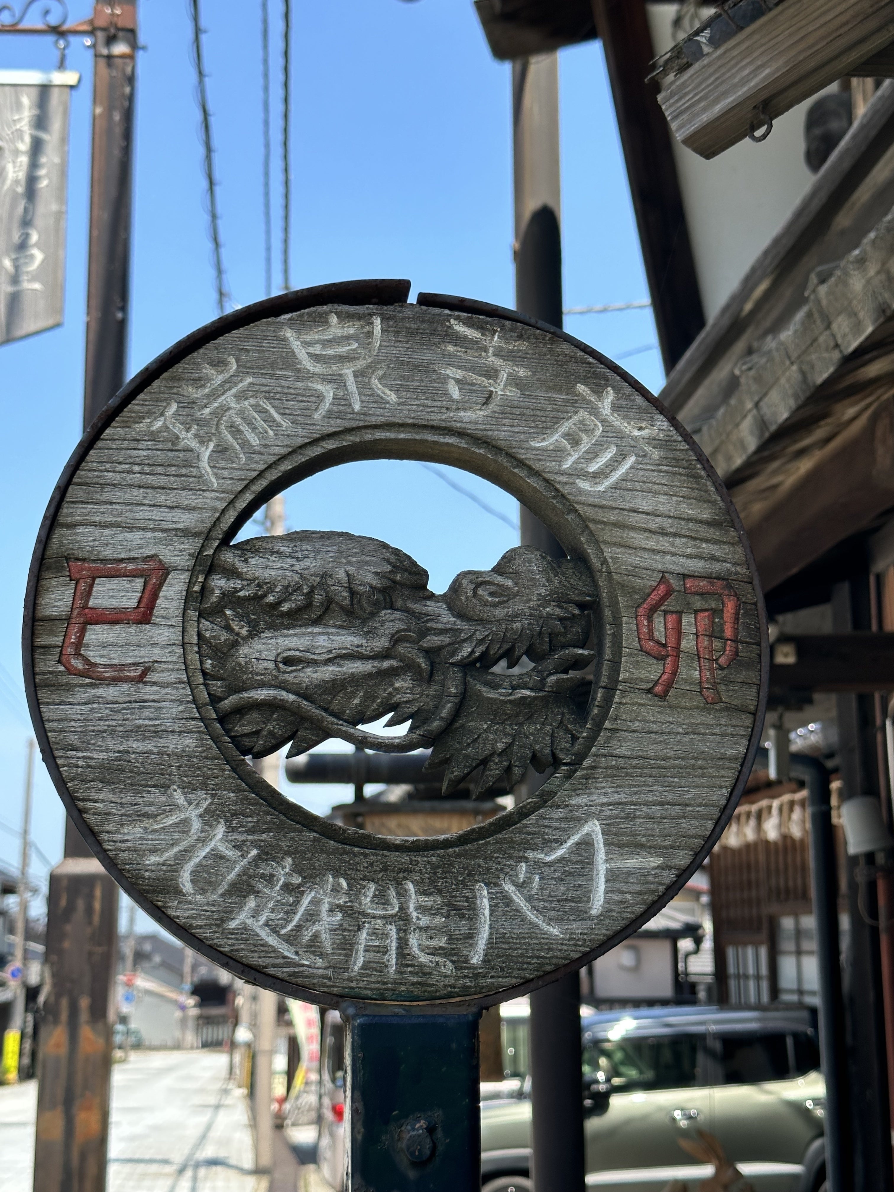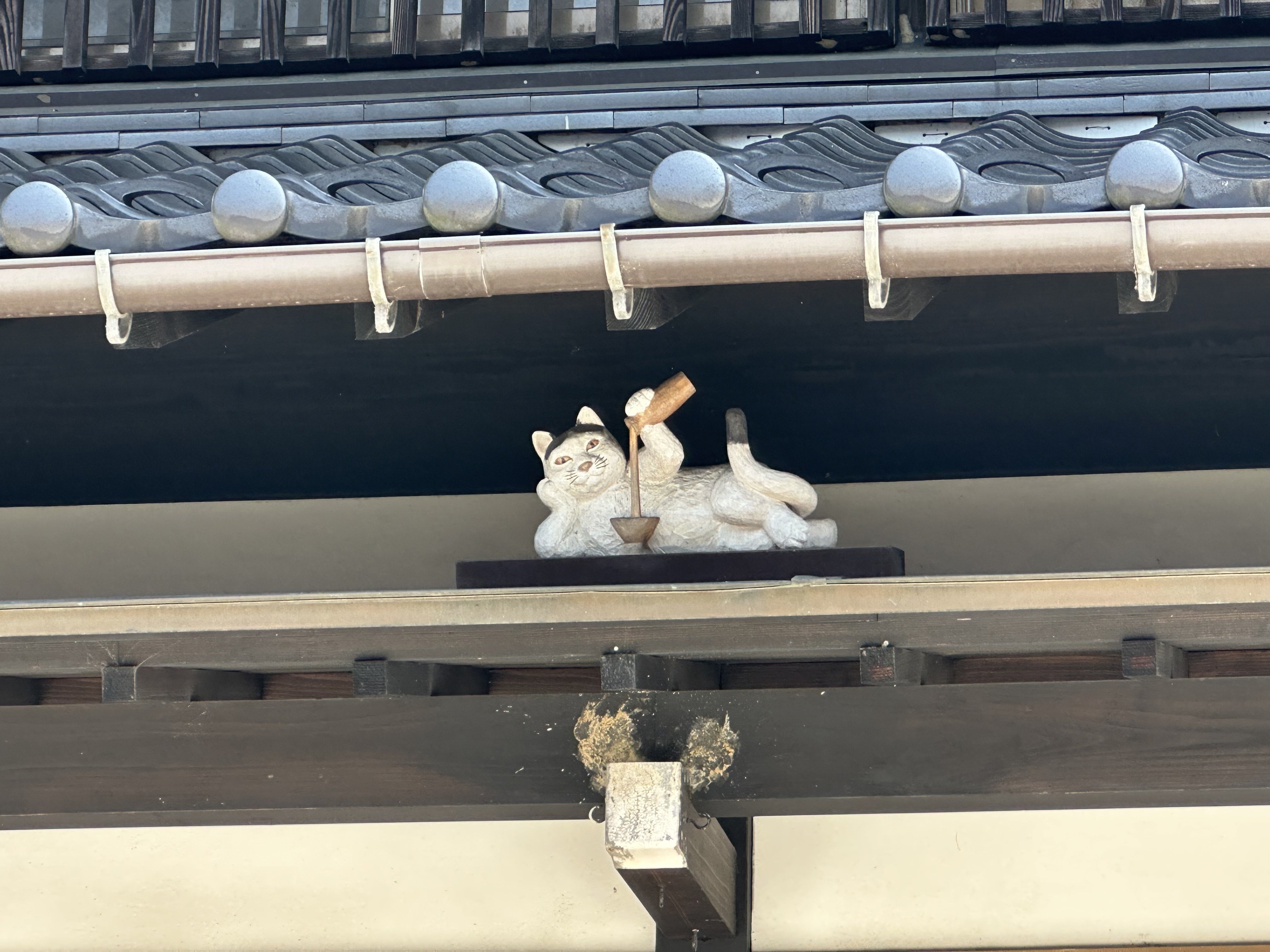 門前の古い町並みには彫刻師が工房を構え、いつでもノミを打つ槌音が聞こえ、いたるところに木彫看板などの作品が溢れています。軒下には様々なしぐさの木彫りの猫たちがお客さんをお待ちしています