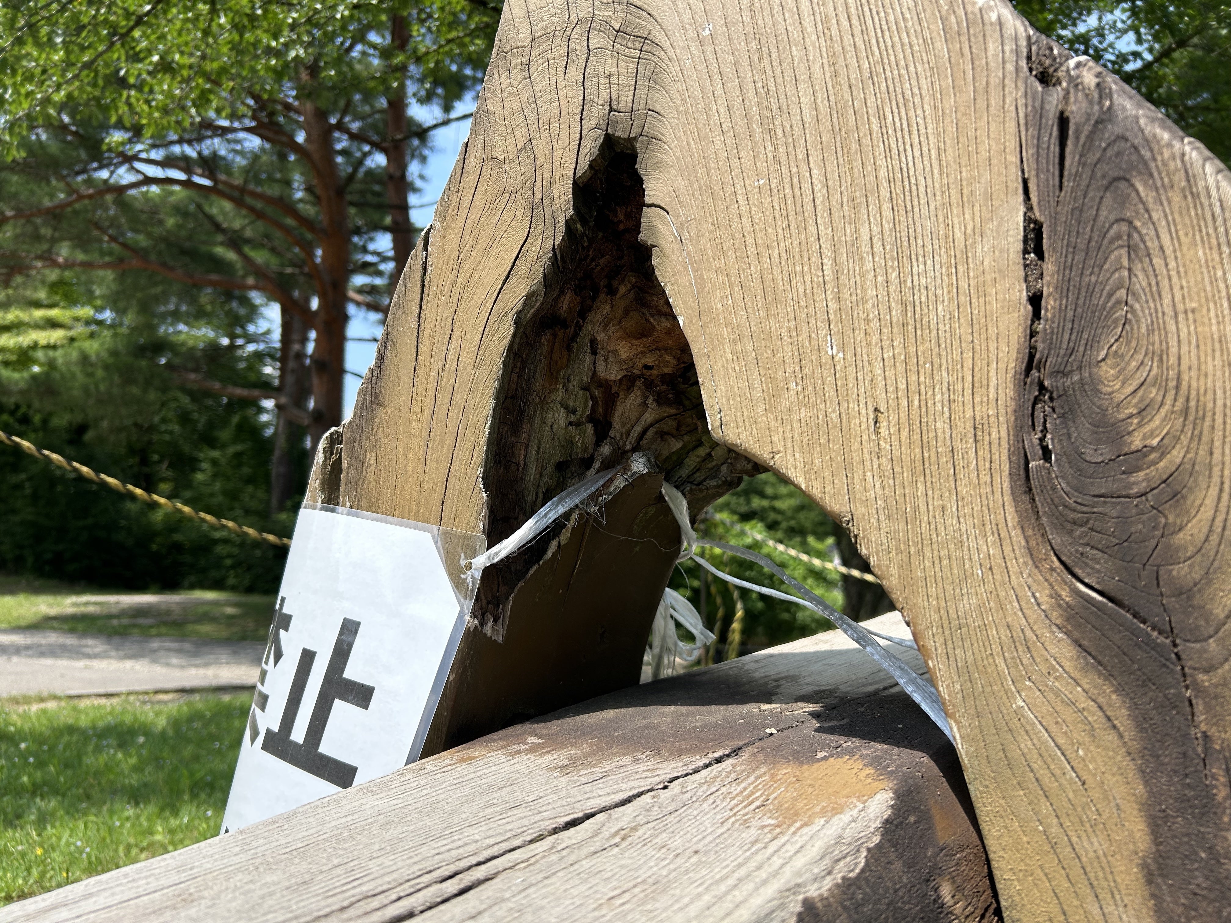 このシーソーも例外ではなく、持ち手のついた馬の頭の固定具は外れ、支柱も朽ちて空洞化が進み、遊具としての安全を保てなくなってしまいました。今まで補修しながら使用してきましたがこれが限界と判断し撤去することと致しました。そして、これまで多くの人に親しまれてきたシーソーでしたので、撤去についてツイッターで発信したところ予想外に多くの反響を頂きました。中には壊される前に見ておきたいと東京、さらにはアメリカから訪れた人がいるなど、改めてファンの方々の思い入れの深さを感じさせられました。