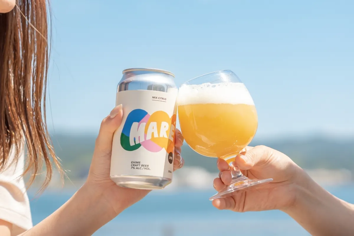 愛媛のみかんと広島の八朔をブレンドした特別なフルーツビール"MAREビール"
