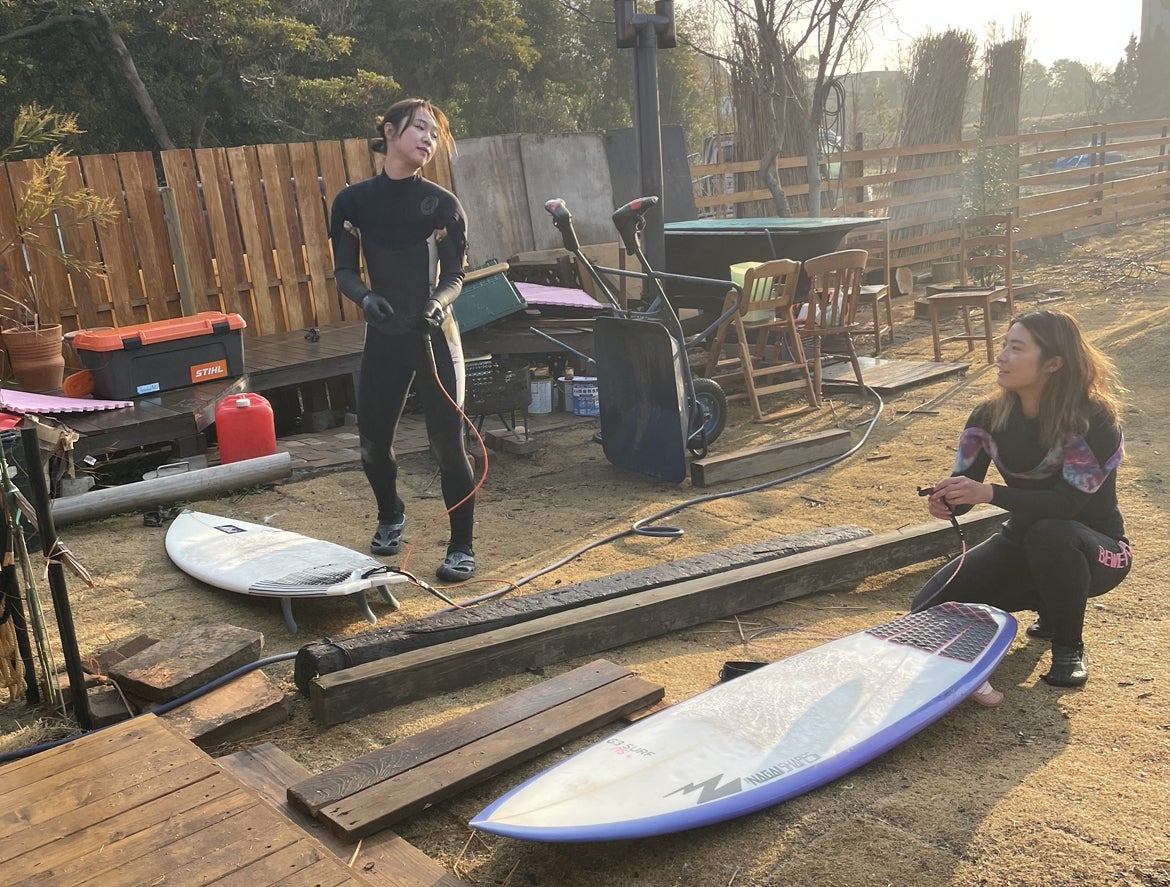 約10年前からサーフィをするために九十九里浜の海の近くにキャンピングカーをおいて