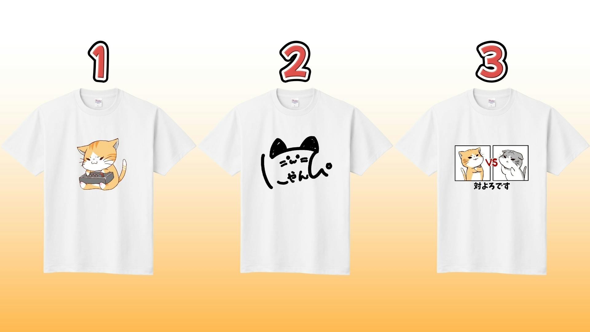 ①にゃんぴ猫デザインのアクリルキーホルダー、Tシャツ、マウスパッドなど、普段使いができるグッズ