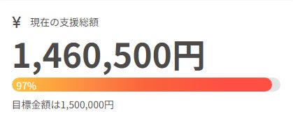 12日から開始したクラウドファンディングが、わずか6日で144万円のご支援をいただき、目標の97%を達成しました。