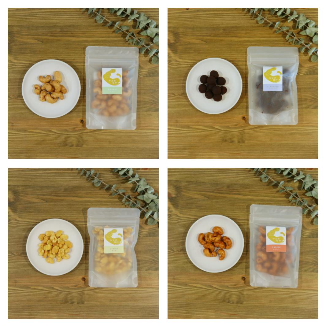 ・各種類(わさび豆・ティラミス豆・檸檬豆・ガーリック豆)をそれぞれ1袋の食べ比べセット