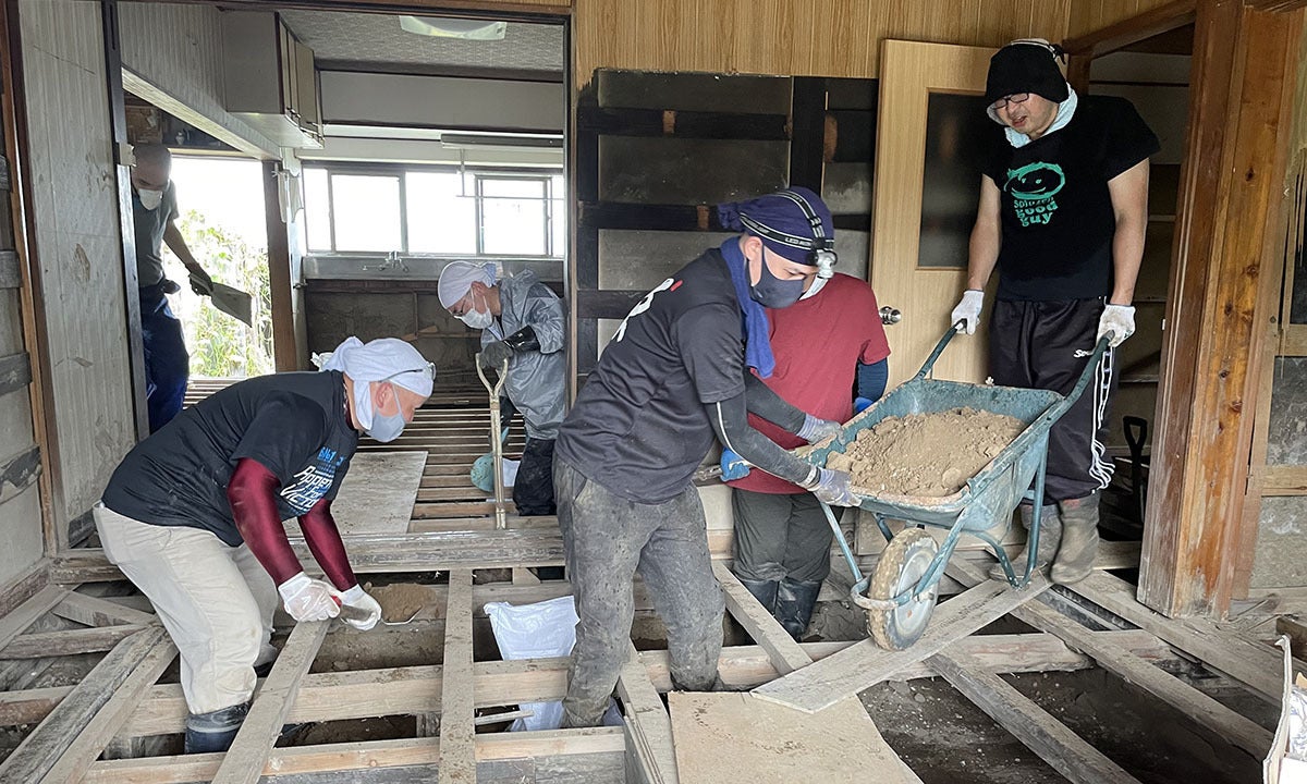 お坊さんグループが泥出し作業にボランティアで出動