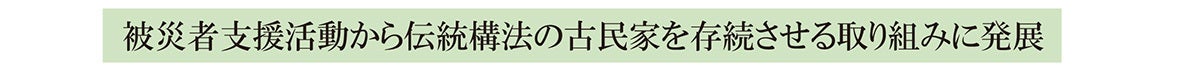 ご近所に被災したまま、いまも修復されていない古民家があります。古民家の良さを見直すことの重要さを多くの人に知ってもらいたいというのが、私の活動の原動力です。
