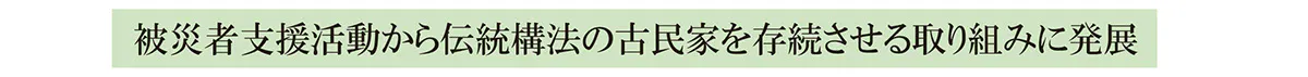 いま毎年のように各地で災害が発生し、貴重な古民家が姿を消していく現実があります。私たちは、この事業を通じて、〈先人が「結」の力で今日まで承継してきた伝統的な古民家を、再び「結」の力で未来に遺していくこと〉〈力を合わせれば被災という困難を乗り越えて修復再建することが可能であること〉を示したいと思っています。それが、今を生きる私たちの責務であると自覚するからです。
