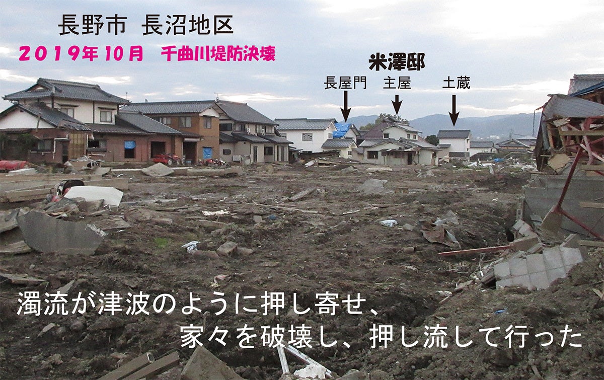 200年前(1818年・文政元年)創建の古民家「米澤邸」は、すぐ横を濁流が押し寄せたものの(冒頭の写真)、奇跡的に損壊を免れました。