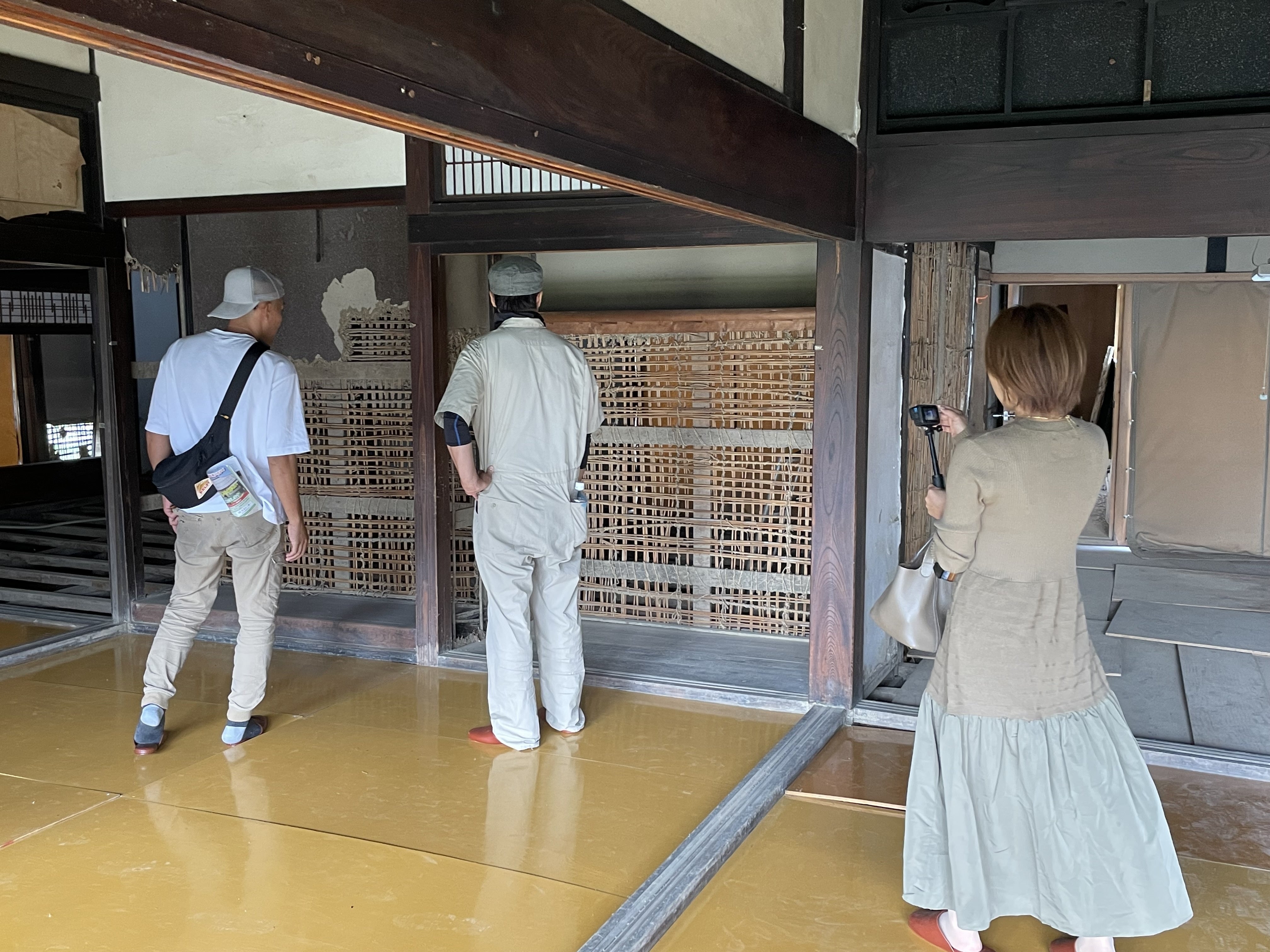 しかしこのお屋敷が優れているのは、物凄い量の泥水が押し寄せても崩壊しなかった事に現れています。壁土は流されましたが、柱や梁などの木構造は残り、多くのボランティアさんたちの懸命な尽力によって綺麗に洗い流された木構造は、ほぼ無傷であり、その後の「土壁塗りワークショップ」で壁も元に戻されました。この家は、「壁など流される前提」で造られていたのです。