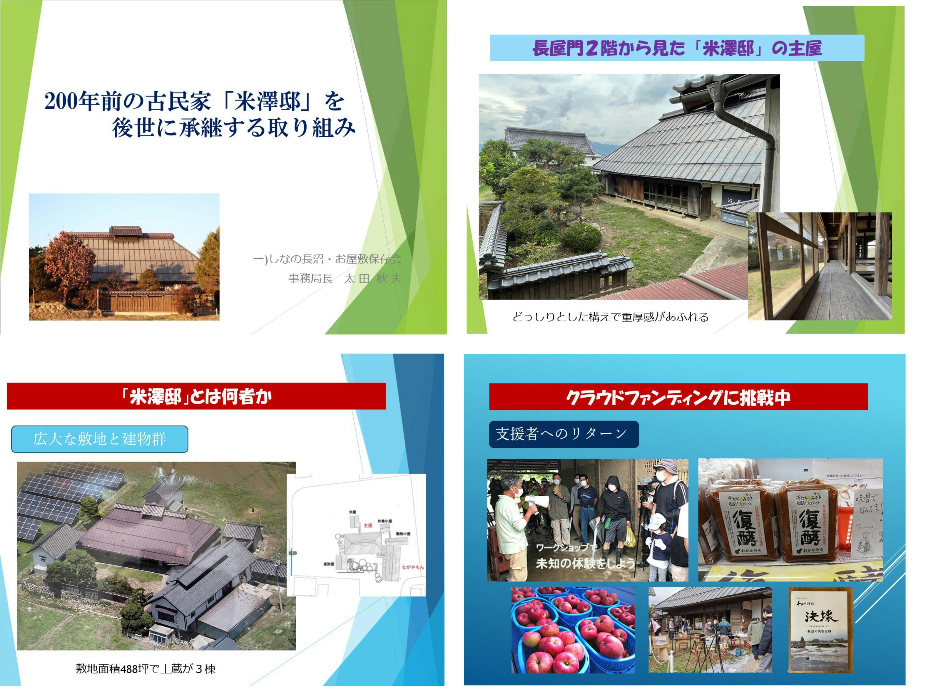 伝統木構造の会の「伝木サロン」で古民家「米澤邸」を修復再建することになった経緯や今後のビジョンについてお話させていただく機会をいただきました。映像もまじえて1時間ほどPPで現状とこれからをお伝えし、そのあといろいろな助言をいただくことができました。