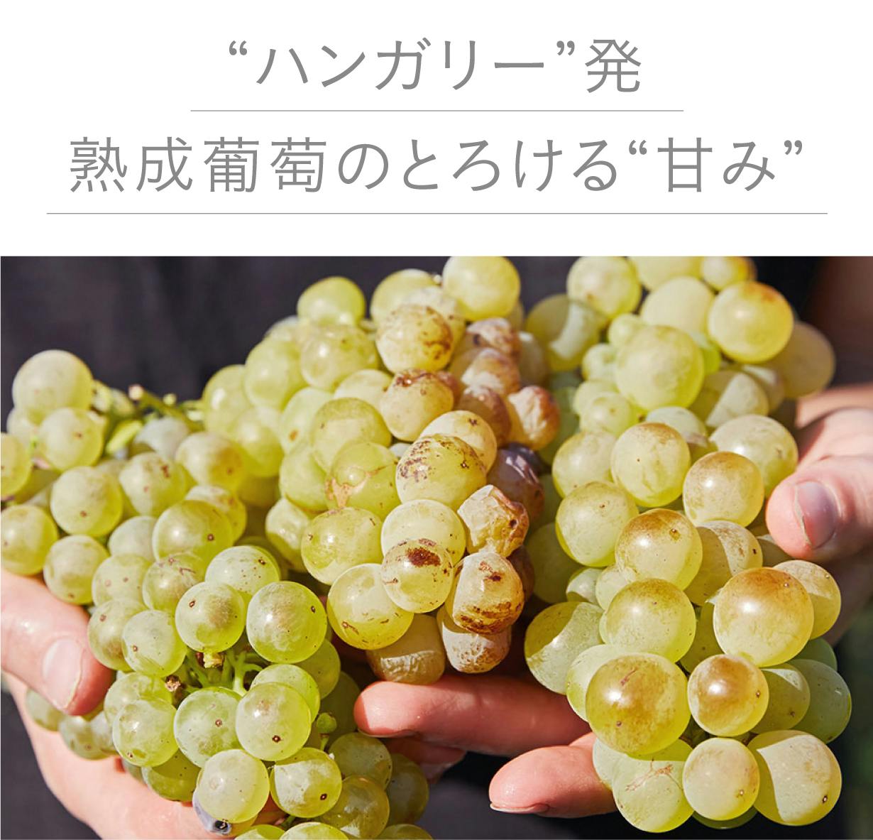 世界には様々な種類の甘口ワインがありますが、中でも最高峰と言われる貴腐ワイン。“貴腐香”と呼ばれる独特な香りと自然由来の甘みが“ぎゅっ!”と濃縮された貴腐ワインは、食前酒としてはもちろん「食後のデザート」としてヨーロッパ中で広く愛されています。従来のスイーツと比較すると砂糖不使用で圧倒的低カロリーながら、 更に深いコクと甘みで幸福に包まれる至福の一杯。「ワインやお酒が苦手」な方や、「ヘルシーだけど甘いものが欲しい」、「甘いけれど、ちゃんと“大人”なお酒と出会いたい」なんて方におすすめの貴腐ワインは、“大人にだけ許された飲むデザート”なのです。