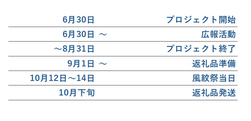「長い歴史の中で積み上げてきた風紋祭を継承し、もっと多くの人に楽しんでもらい、さらに多くの方にご来場いただきたい」という思いから、このクラウドファンディングを立ち上げました。皆様のご支援が風紋祭の復活と成長に繋がります。どうかご協力をお願いいたします。
