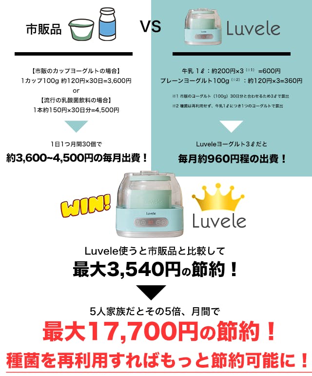 市販のヨーグルト約20個分のヨーグルトに相当し、毎日購入する必要はありません。