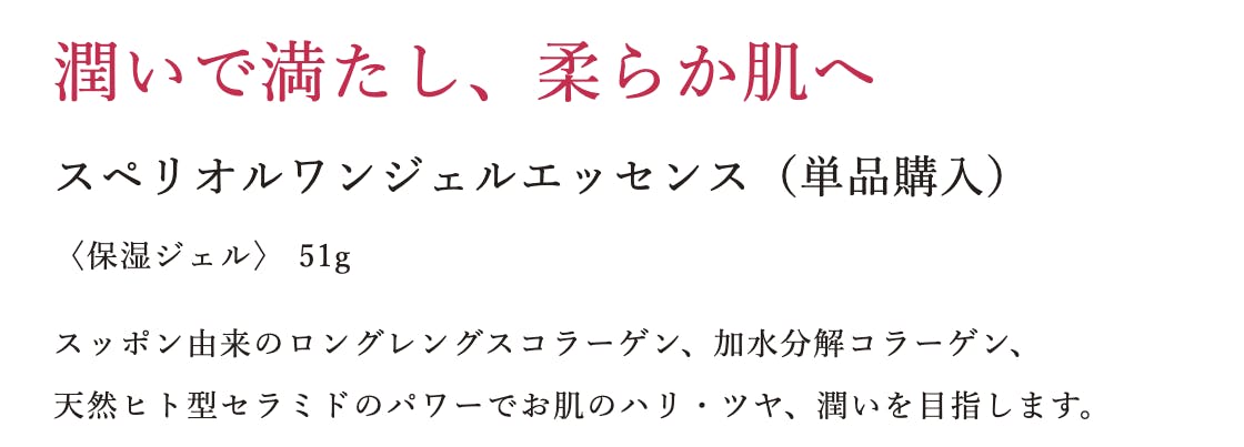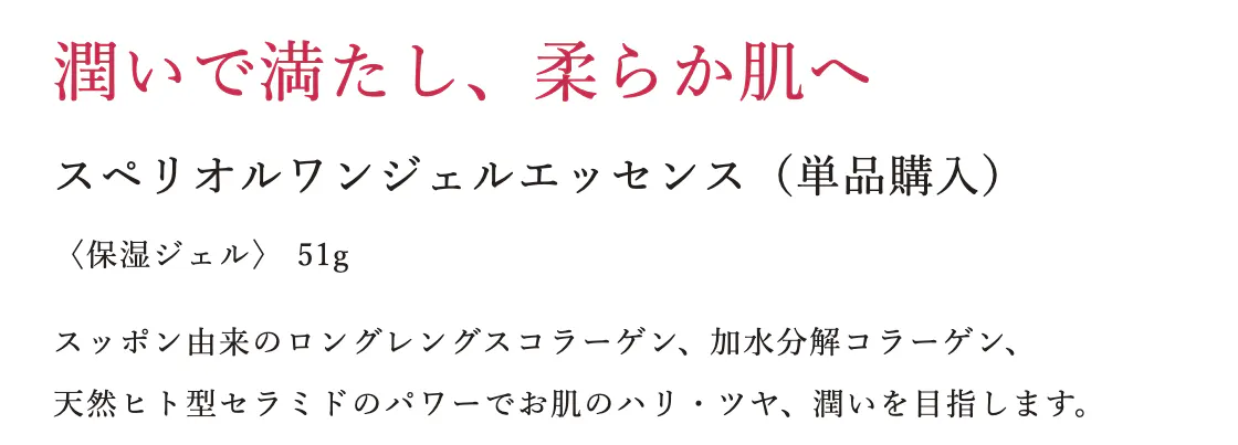 そして、そのコラーゲンを加工し、保湿力を最大限に発揮できる形状にしました。そのコラーゲンがスッポン由来ロングレングスコラーゲンです。さらに、スッポン由来のコラーゲンに加えて、天然ヒト型セラミド(表示名称:セラミドNP,セラミドAP)やダマスクローズオイルなどの高品質な成分を配合しました。