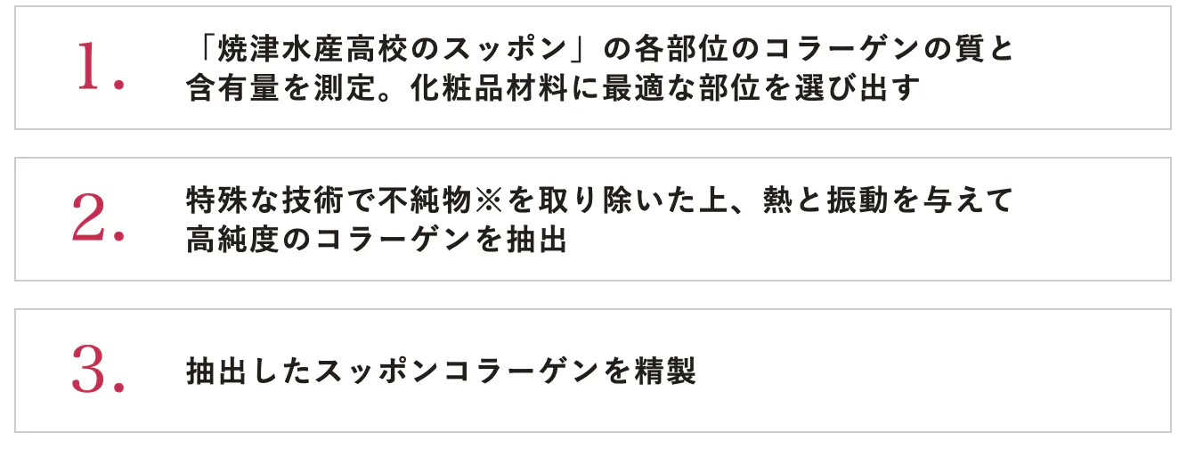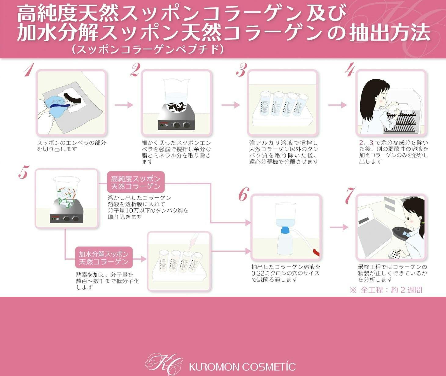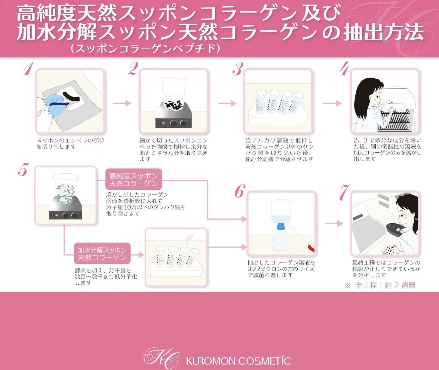 新魚栄と近畿大学の連携は、スッポンから「高純度のコラーゲン」を抽出・精製するための挑戦でした。具体的な過程は以下のようになります。