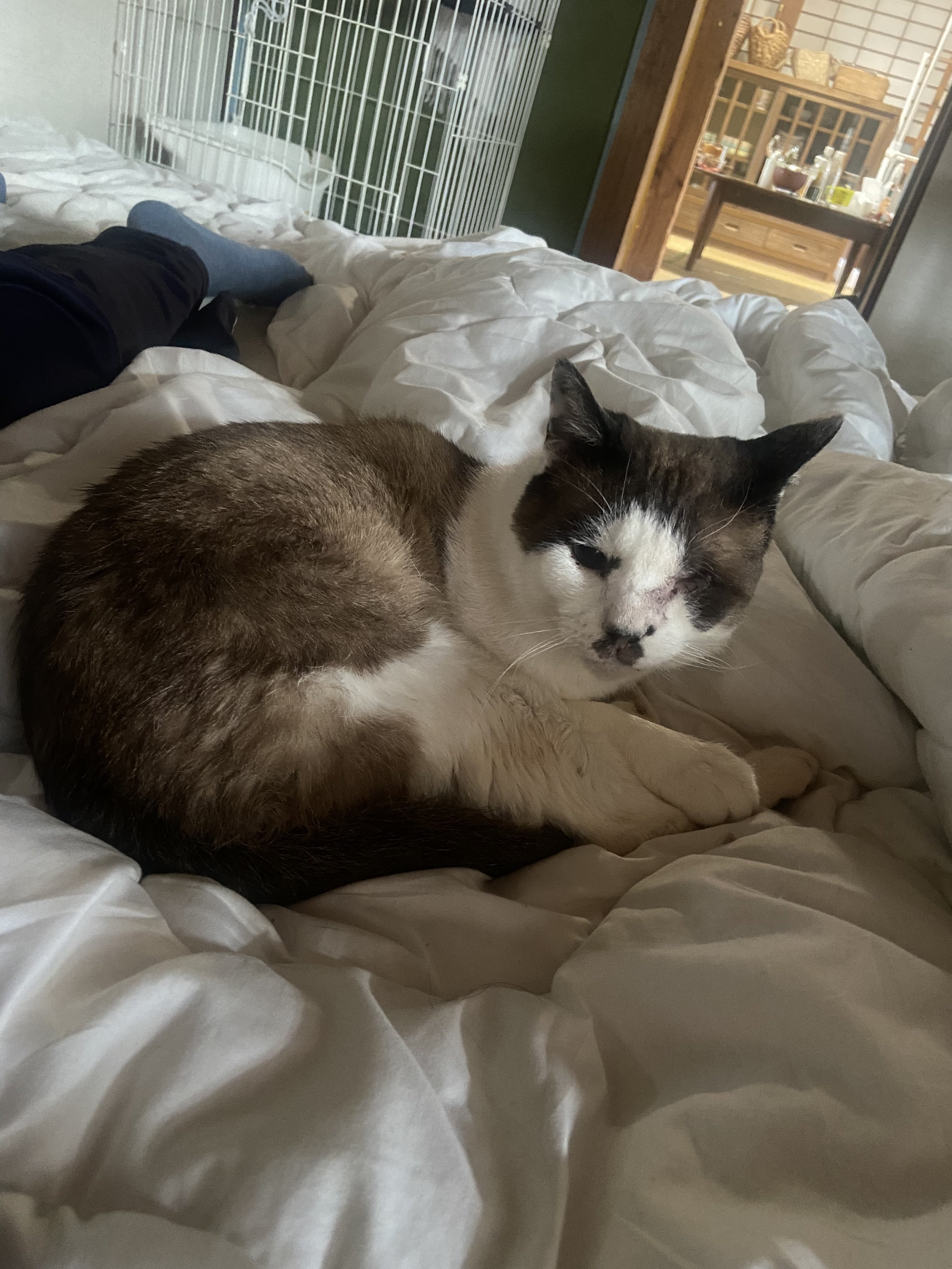 そして片目を失った状態で小さく丸まっていました。