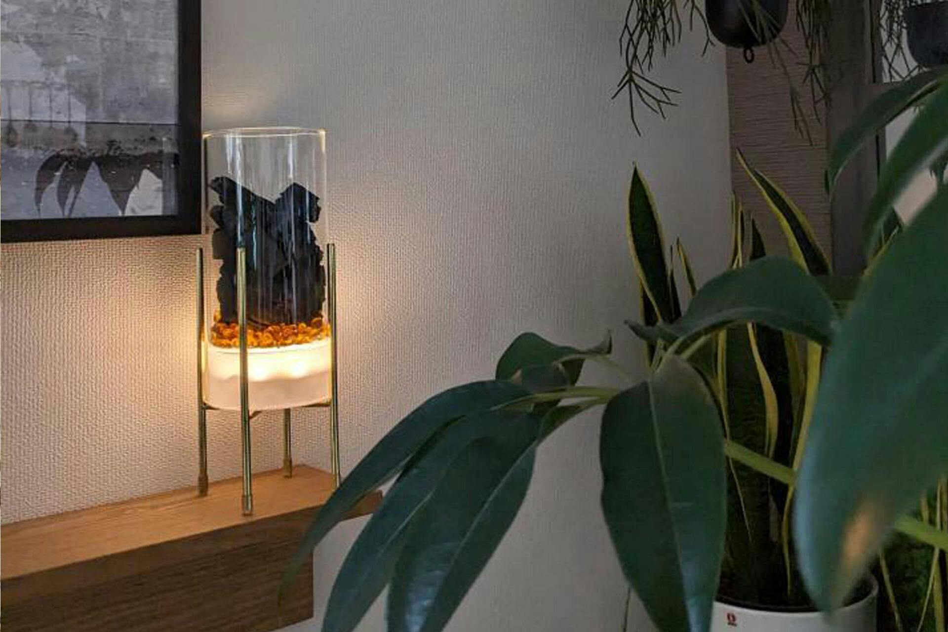社内に置いていますが、夕方の少し薄暗くなった時間帯に点灯するので思わず見とれてしまいます♪