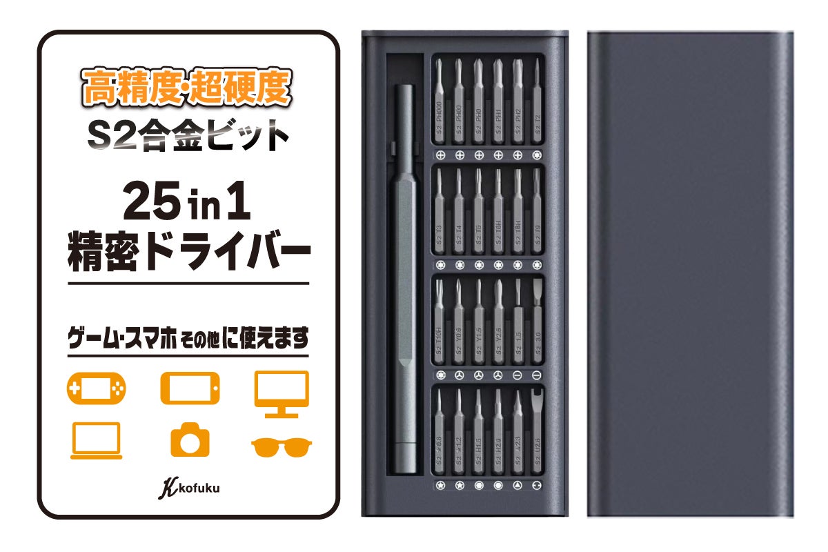 高精度・超硬度S2スチールビットの25 in 1精密ドライバーセット!Amazon、K-SHOPにて販売開始!