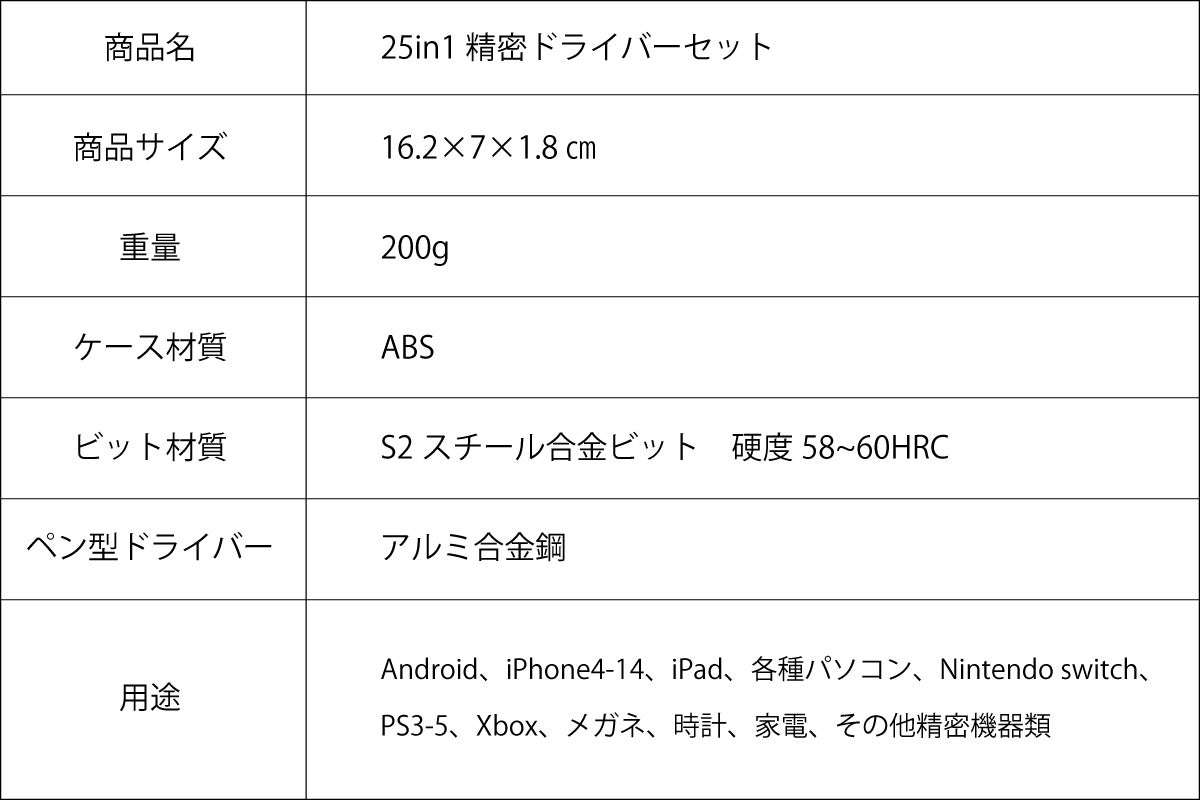 ■25 in 1精密ドライバーセットの仕様