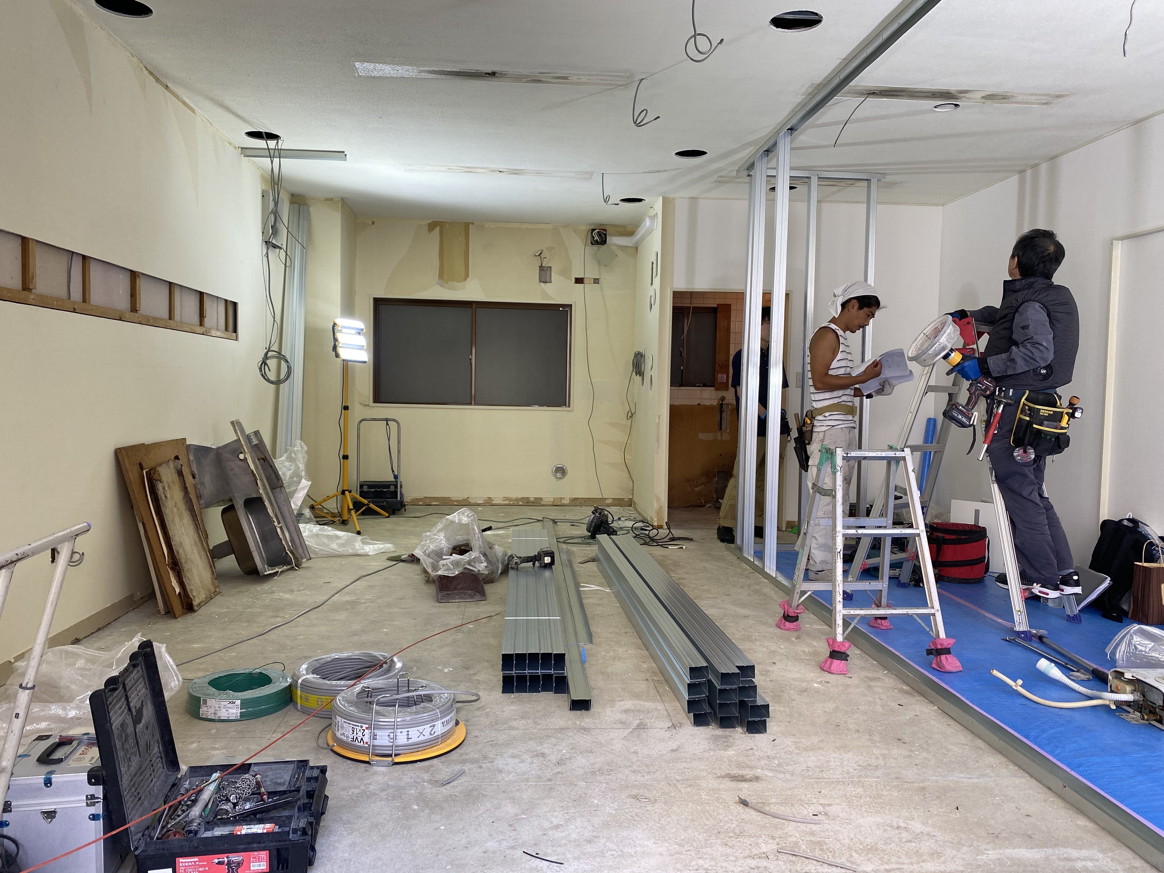 いよいよ工事がはじまりました!壁と床を剥がして、床にはモルタルを、壁には珪藻土を塗っていきます。青いシートが貼ってある部分は倉庫になるので、そのままの状態で使用し、店舗部分との境界の仕切りを作ります。トイレや手洗いを新しいものに入れ替え、店舗部分にカウンターや棚を作ってもらいます。クラファンも残り18日となりました。皆さんのご支援の一部が壁となり、床となり、カウンターや棚となります。もうあとひと押しのご協力をお願いできると助かります。SNSでのシェア、周りの方との情報共有など、よろしくお願いいたします。