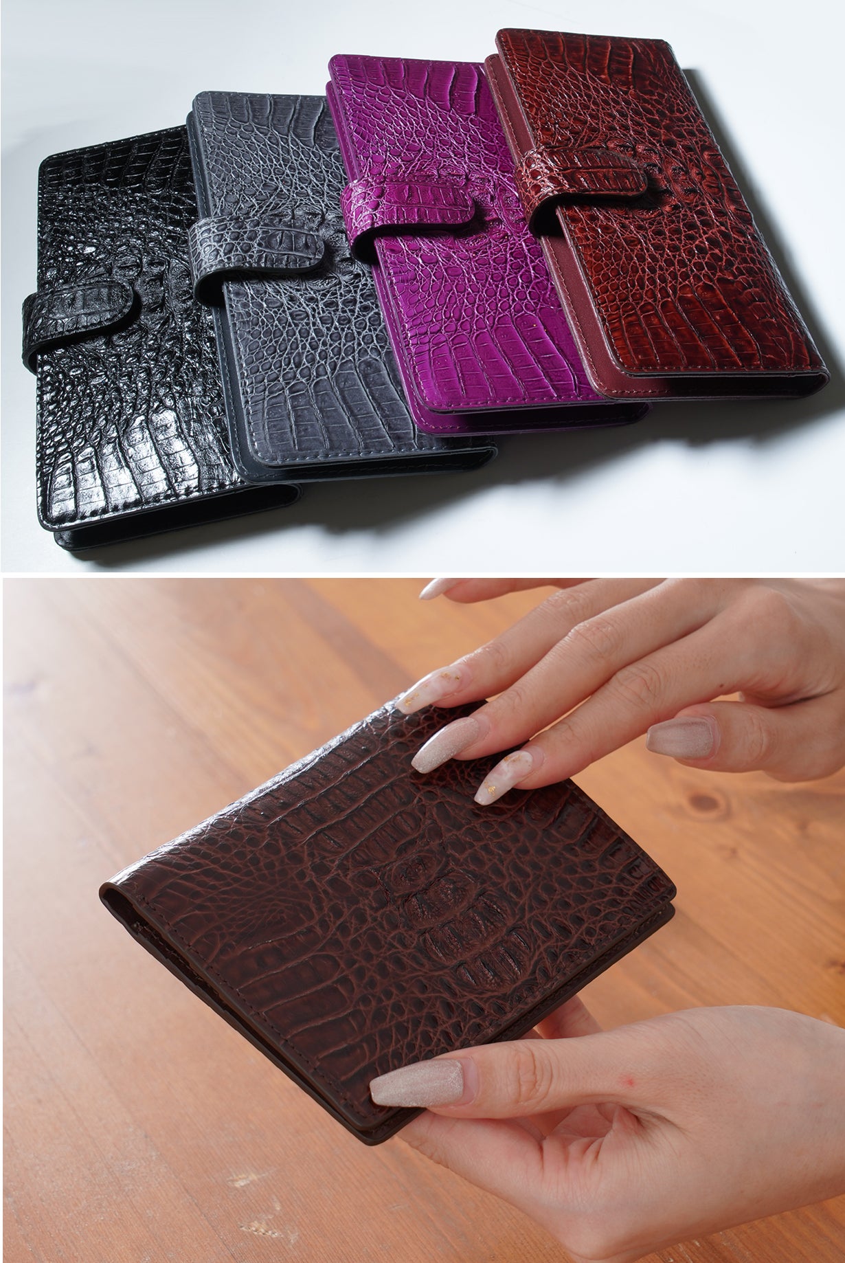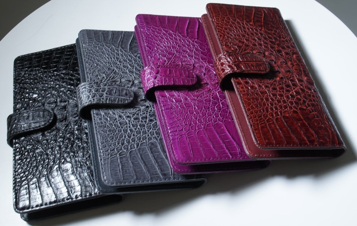 本物よりも品質とワニ柄が安定した高品位なクロコダイルウオレット、スマホケースが完成。