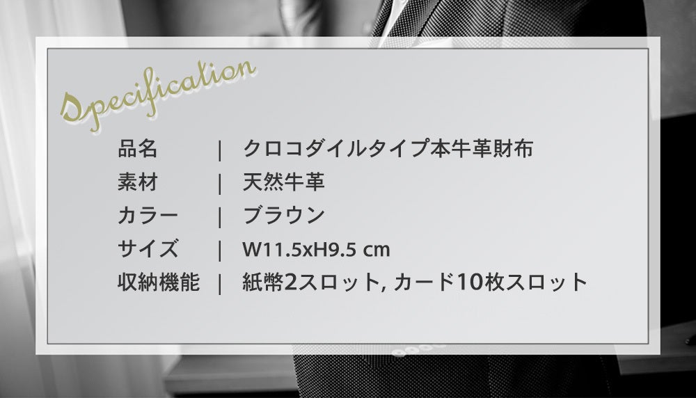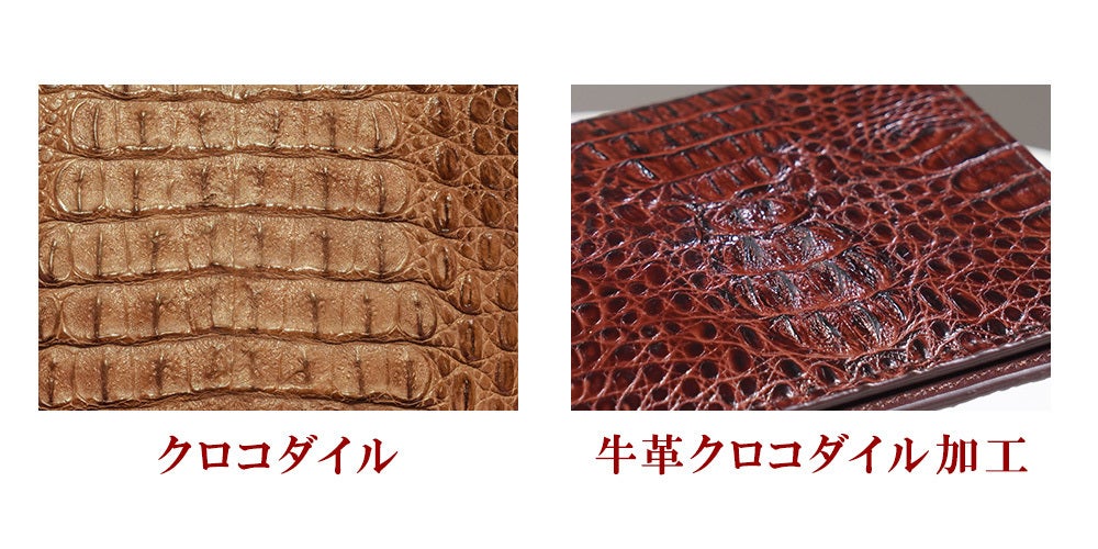 フェイクのクロコダイル調とは言っても天然牛革で製作するため、品質が格段にいい製品になります。